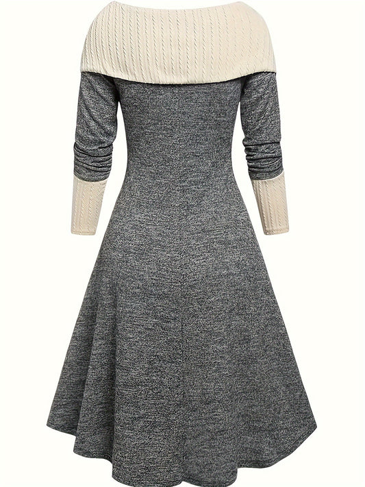 Striped Collar Knit Dress with Lace-up Detail, A-Line Fit.