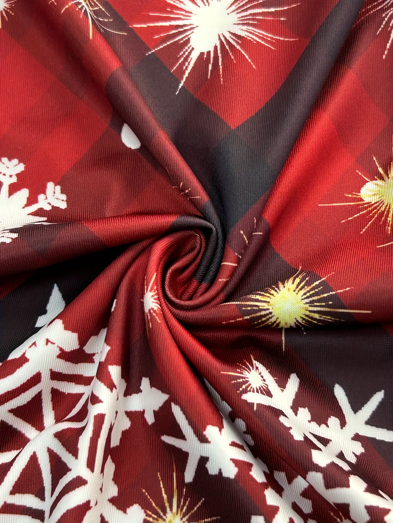 Langärmliges Midikleid mit Weihnachtsdruck und Rundhalsausschnitt für Herbst und Winter.
