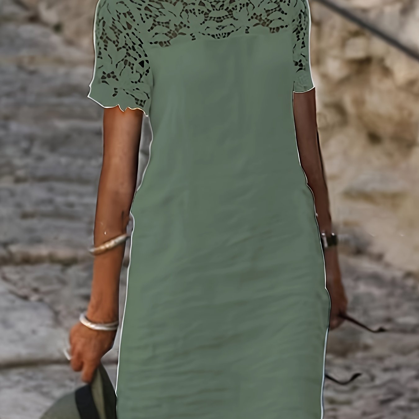Kleid mit einfarbiger Spitze und Spleißtechnik, elegante Kurzarm, perfekt für Frühling und Herbst.