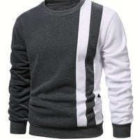 Color Block Casual Sweatshirt, Men's Crew Neck Fall/Winter Design