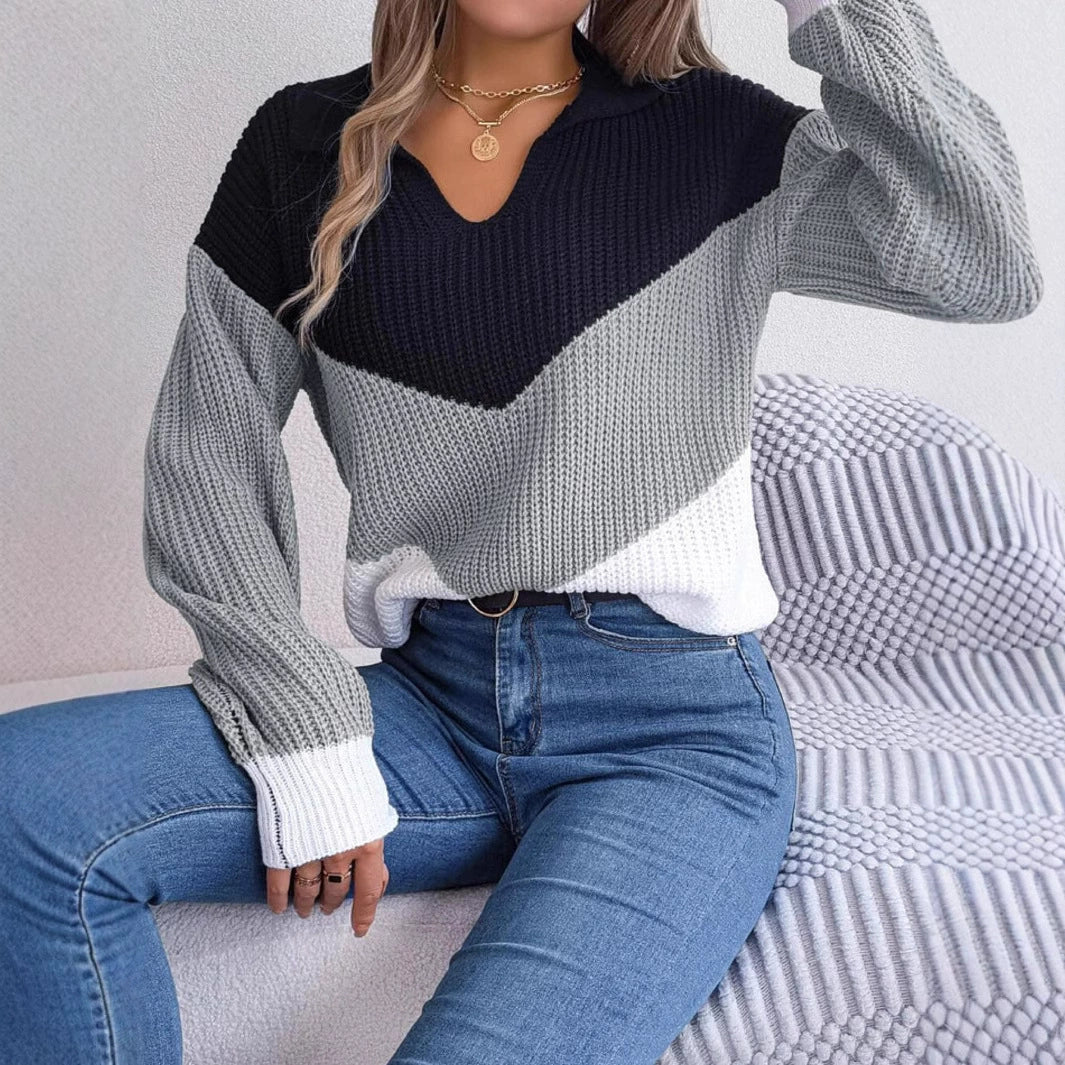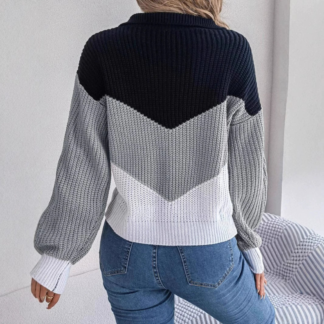 Color Block Quarter Zip Sweater, Casual Long Sleeve, Fall/Winter.