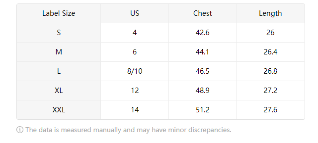 - Size: Please follow the size chart in the photos and choose the size based on your own body measurements before buying. Thank you!