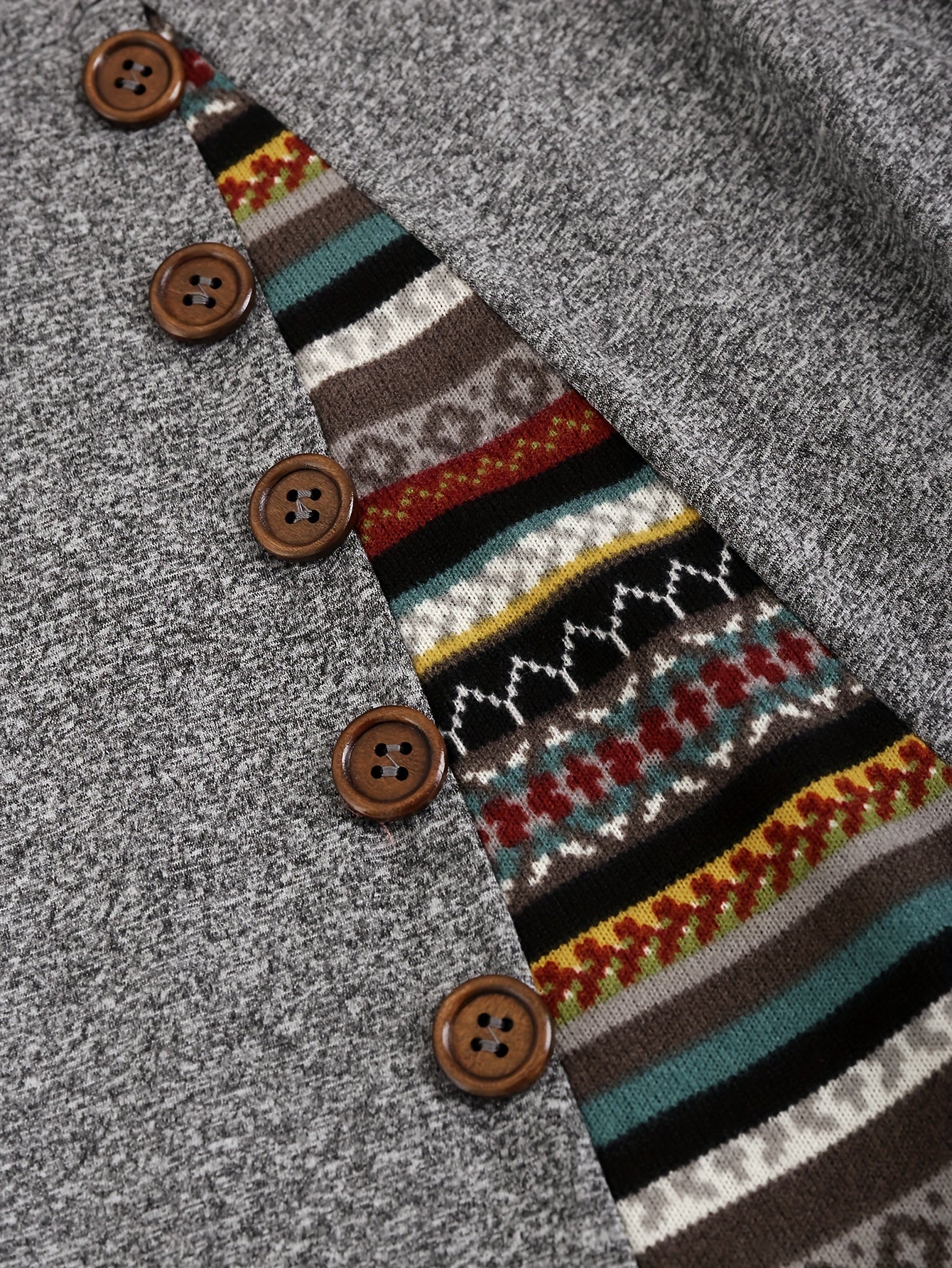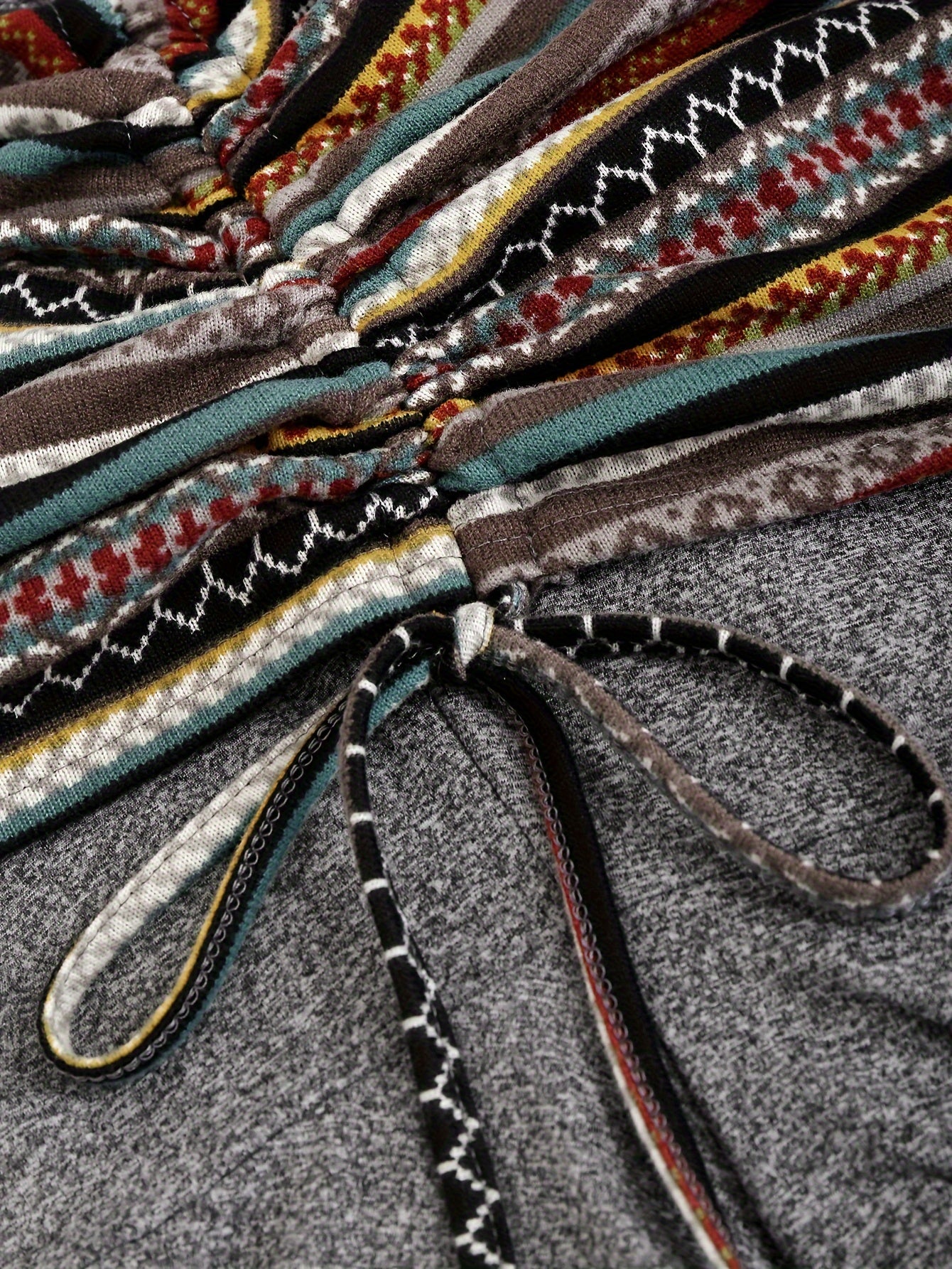 Ethnic Striped Off-Shoulder Dress with Drawstring.