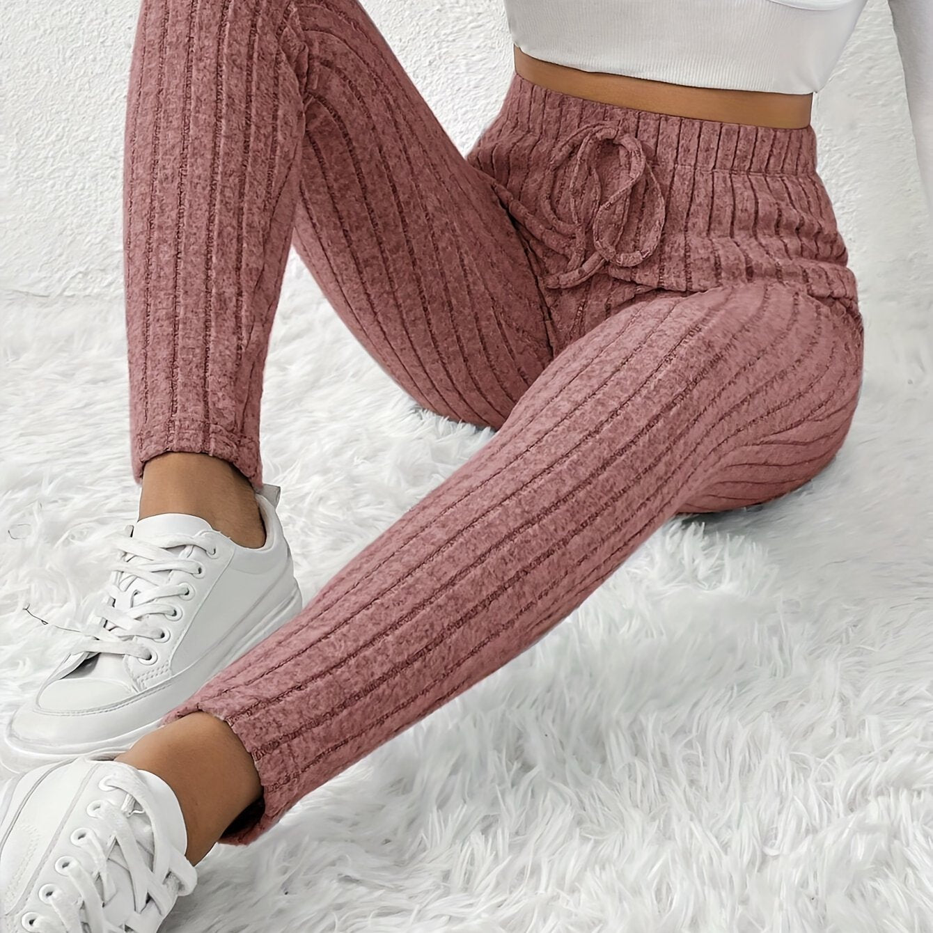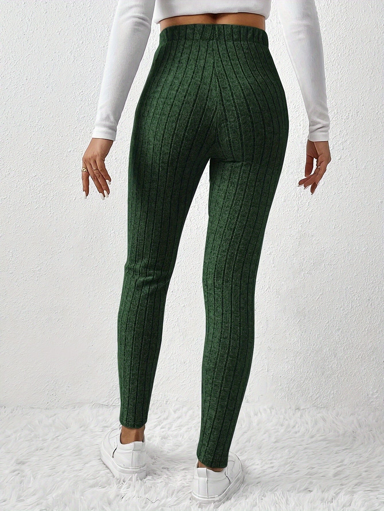 Elegant High-Waist Ribbed Skinny Pants for Women - Stretchy, Slim Fit with Elastic Waistband, Perfect for Fall/Winter