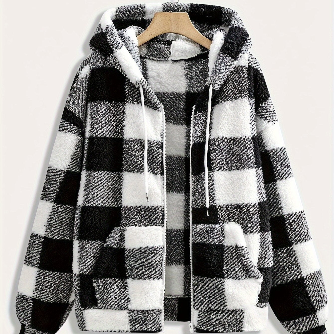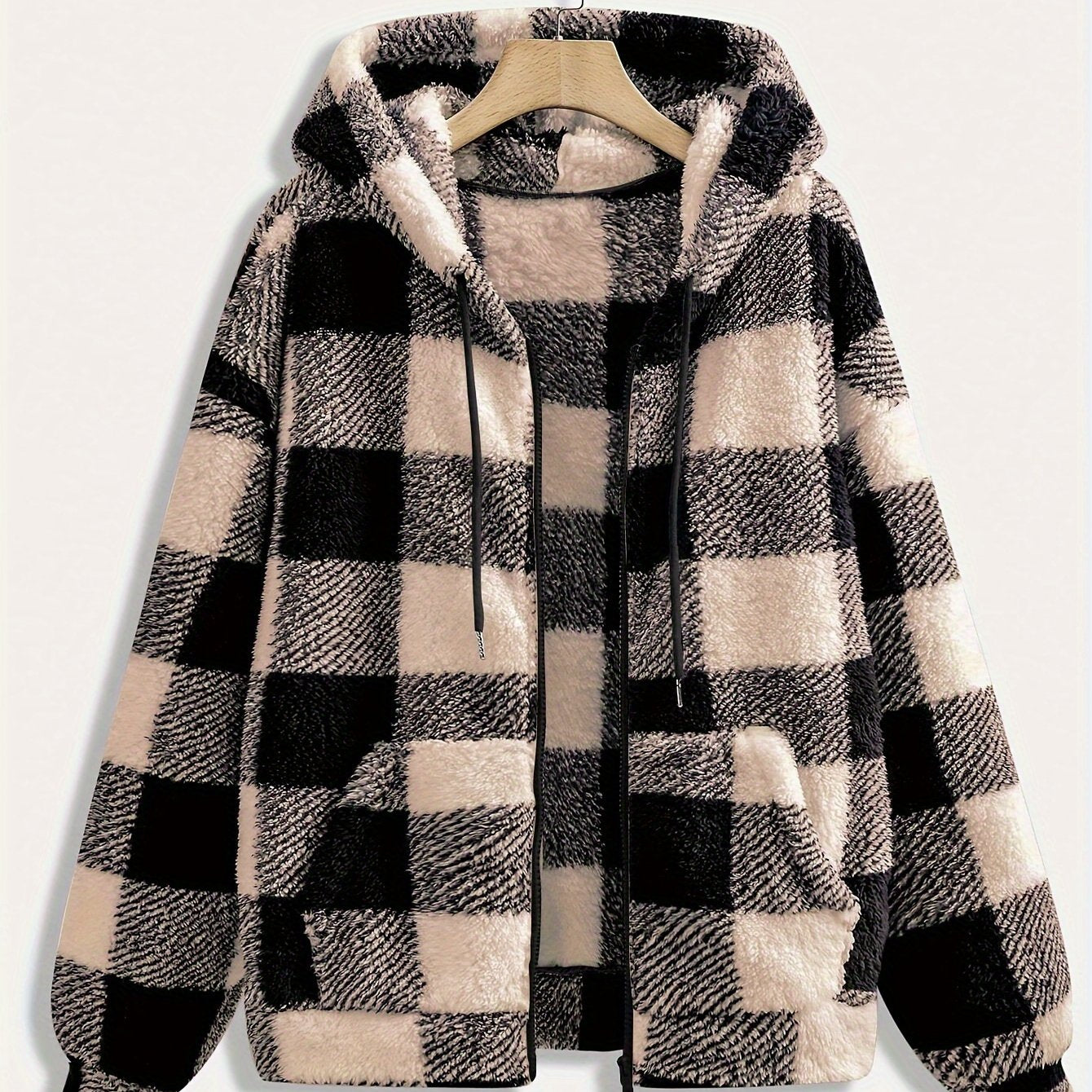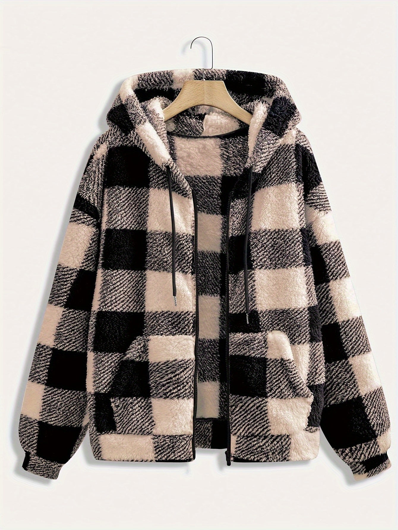 Plaid Hooded Zipper Coat, Casual Fall/Winter Outerwear
