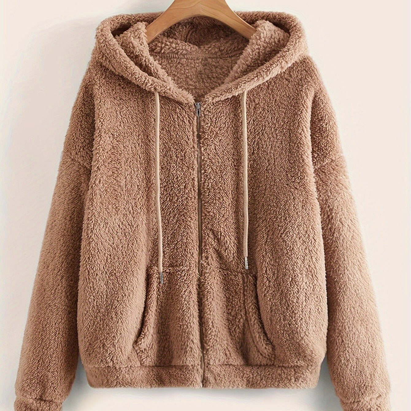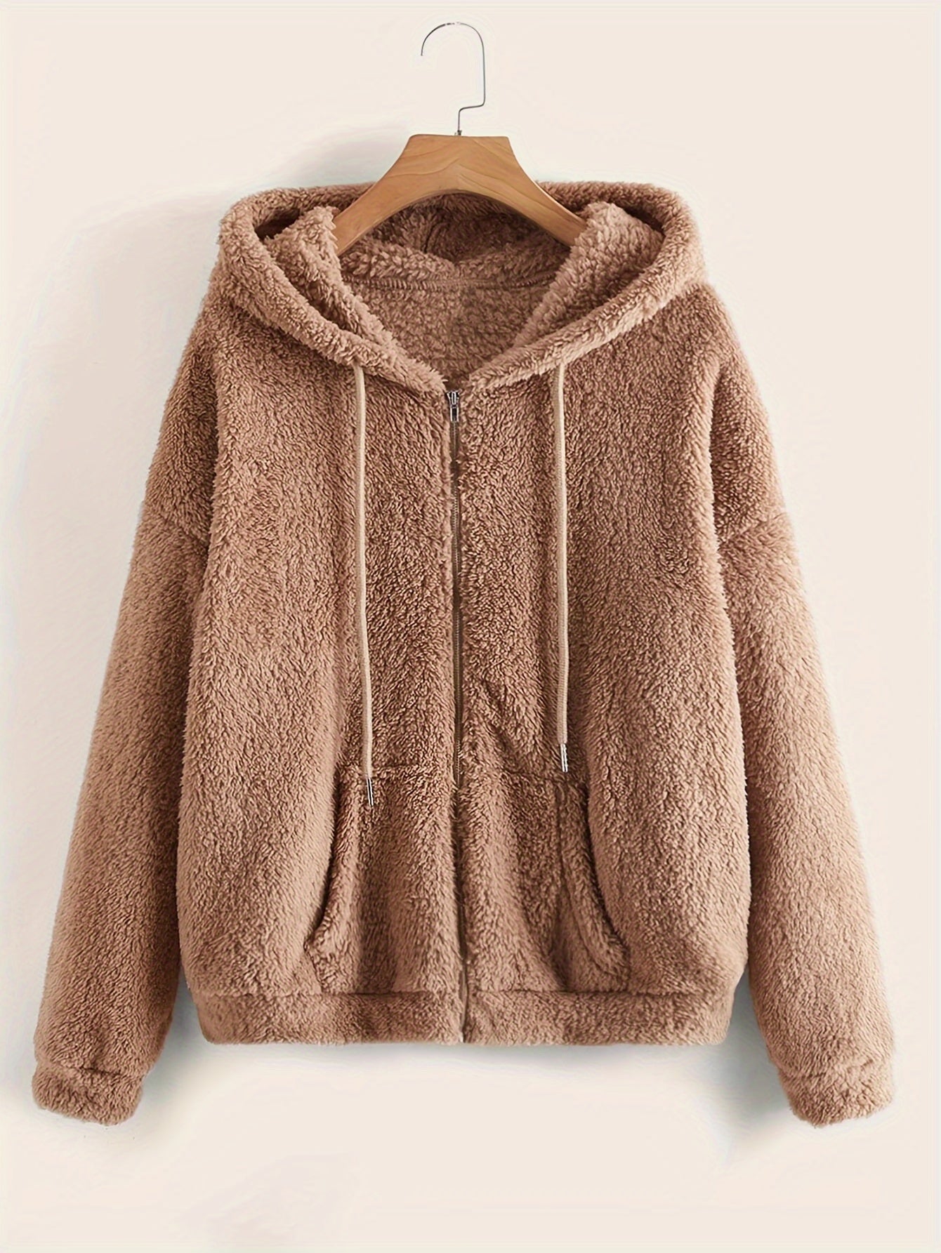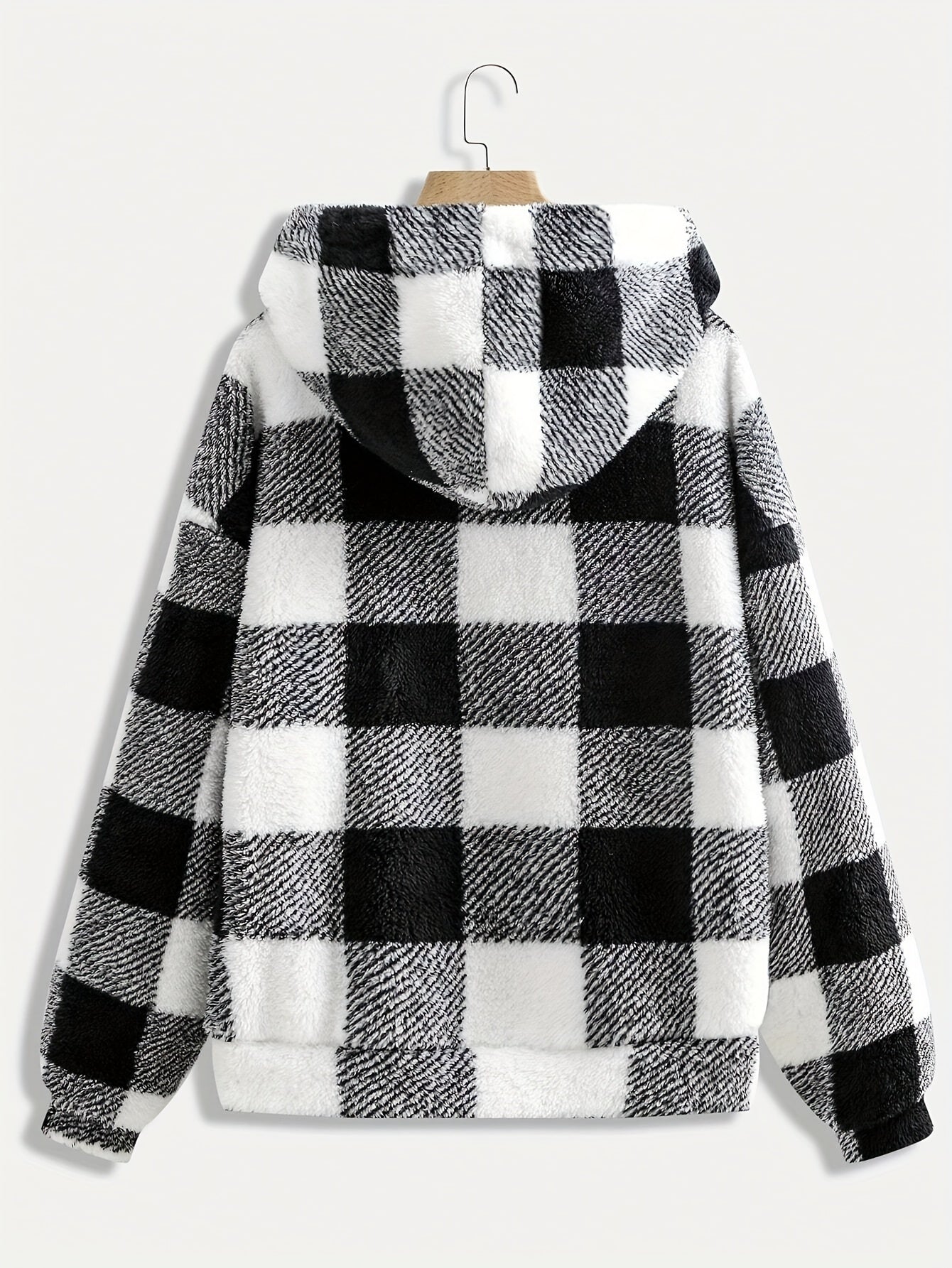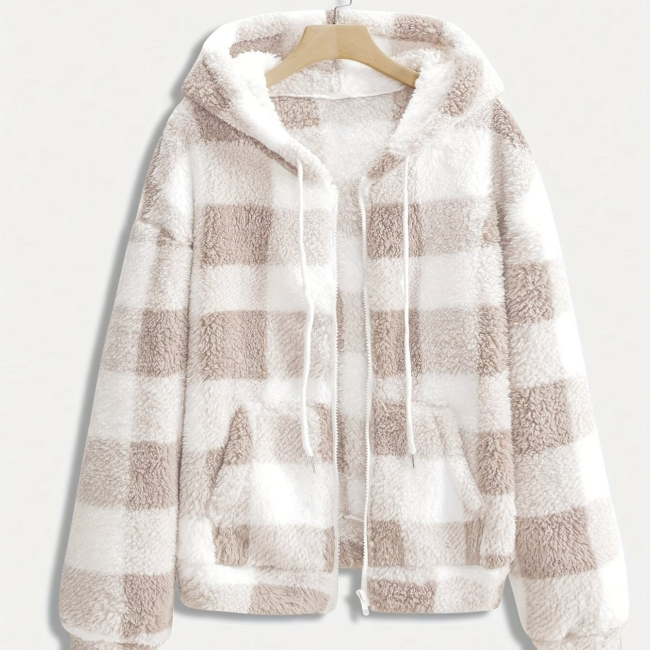 Plaid Hooded Zipper Coat, Casual Fall/Winter Outerwear