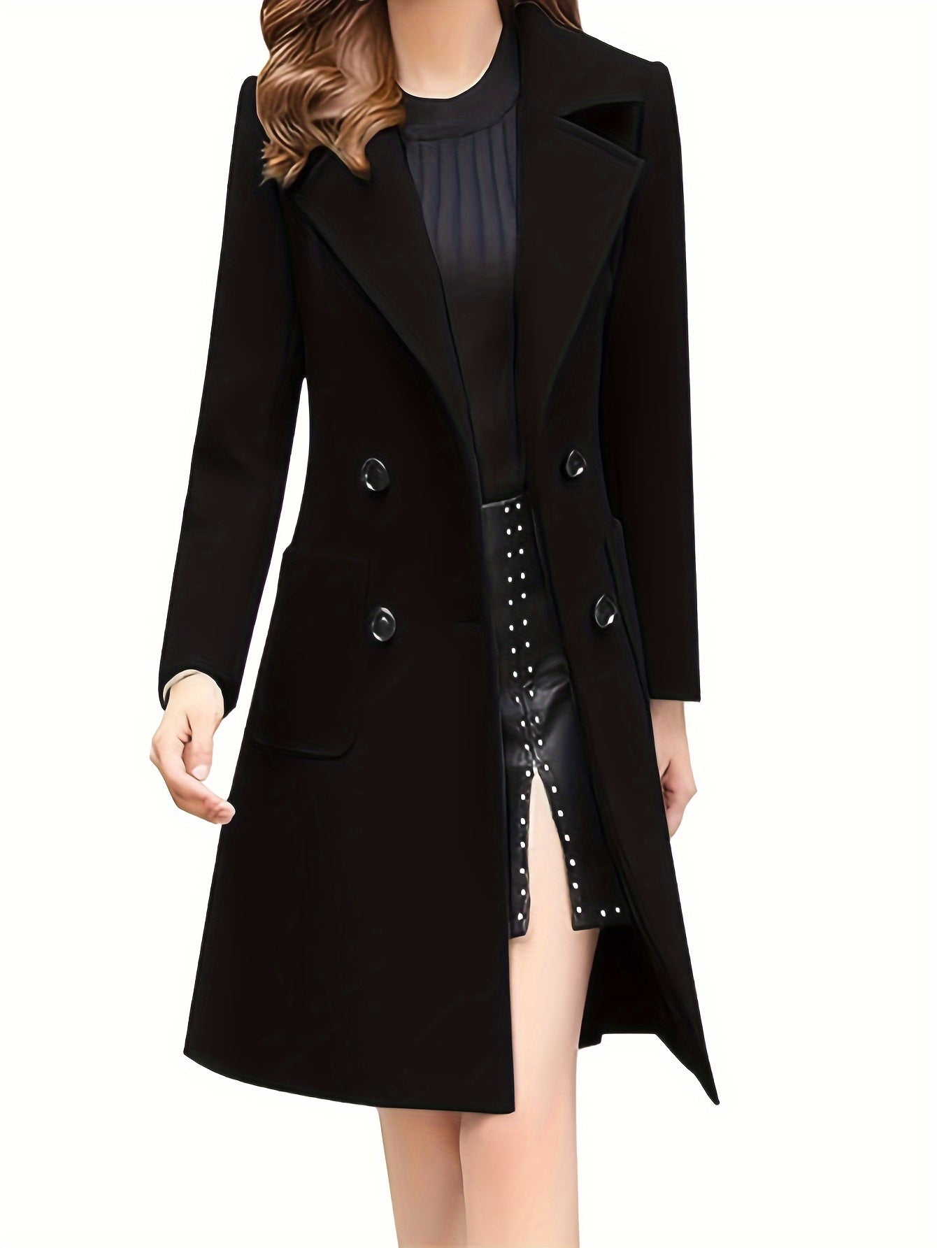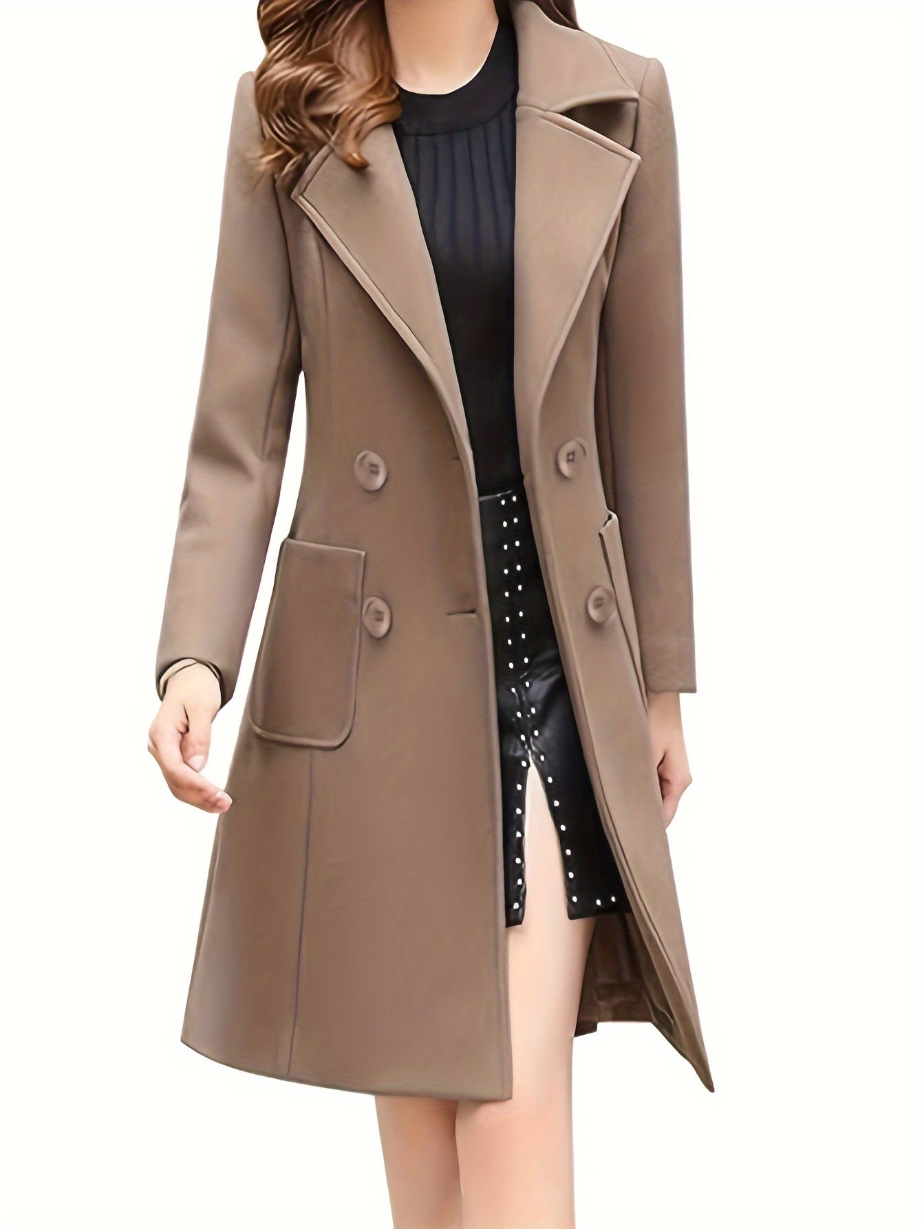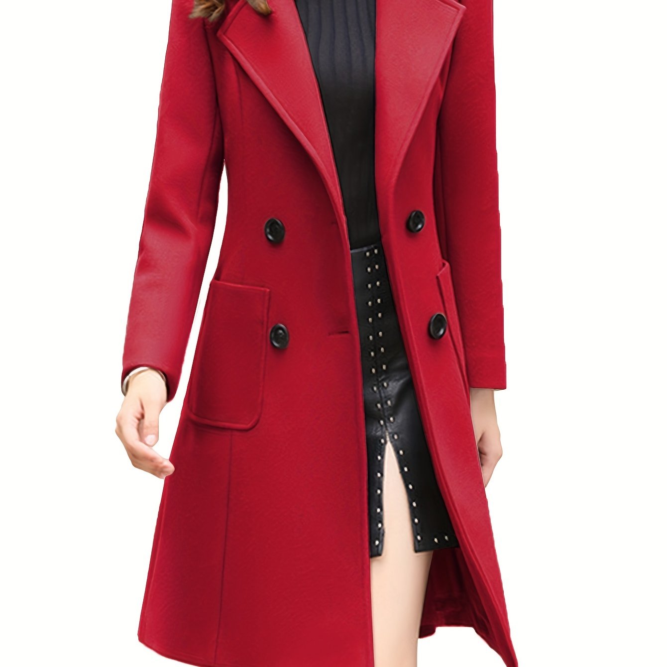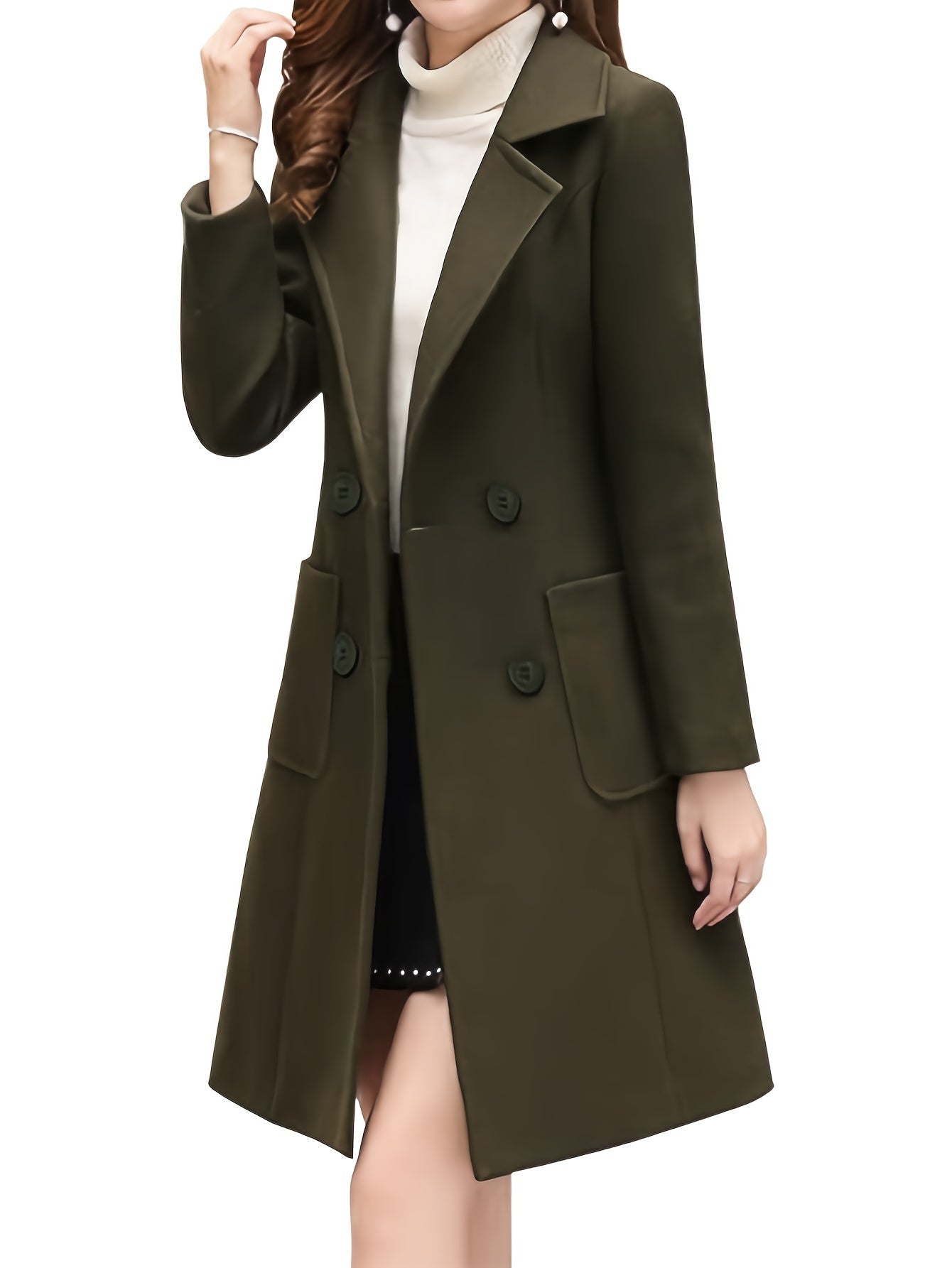 Women Winter Notch Double-Breasted Lapel Jacket Outwear Mid-Long Coat