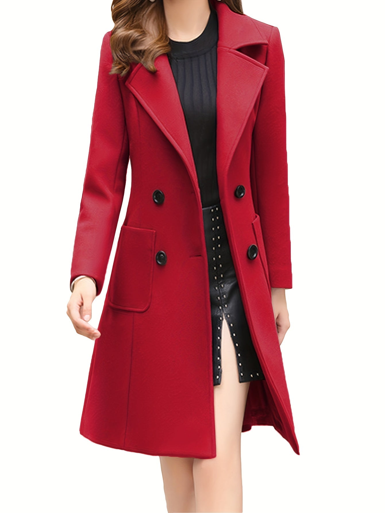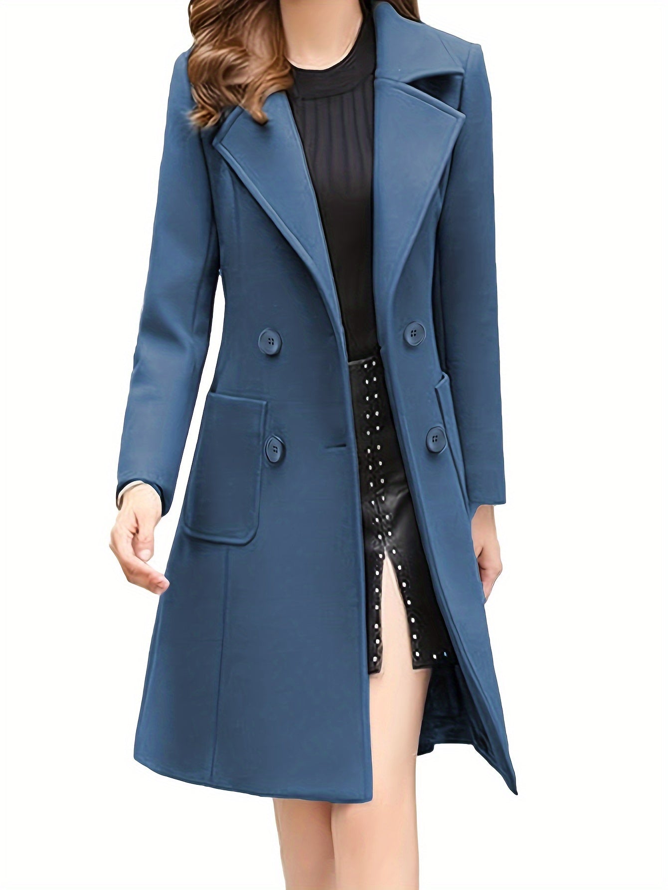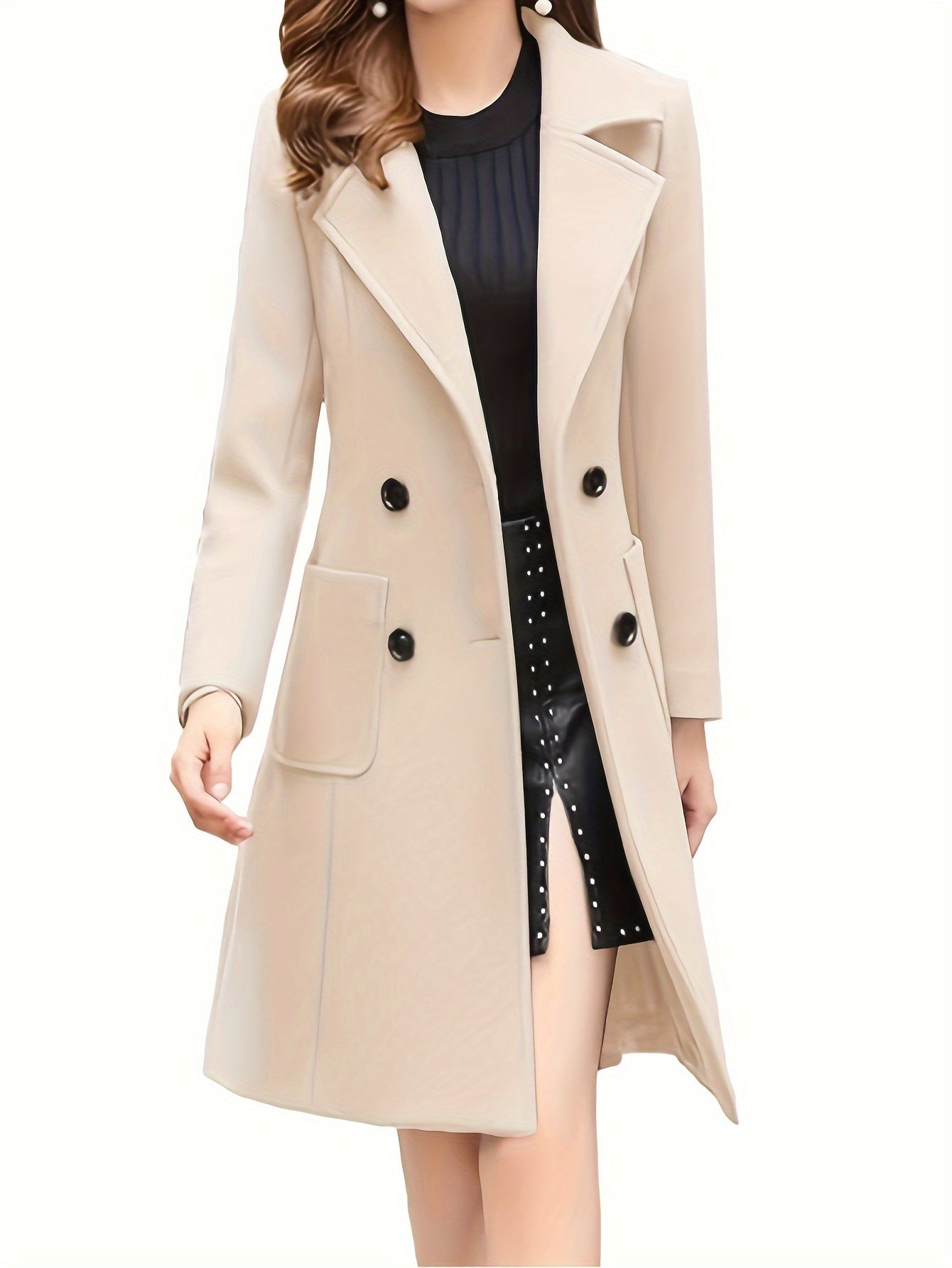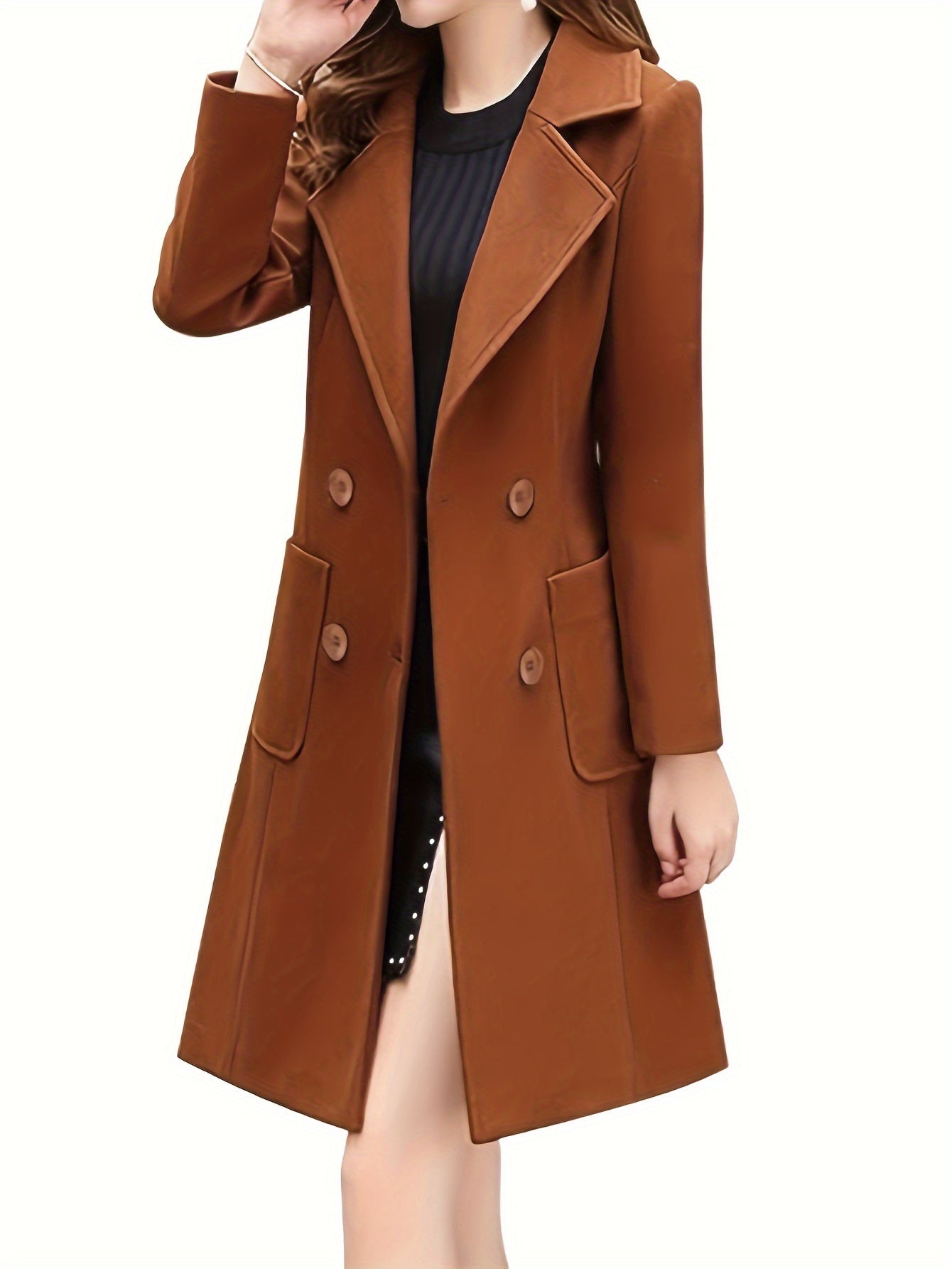 Women Winter Notch Double-Breasted Lapel Jacket Outwear Mid-Long Coat