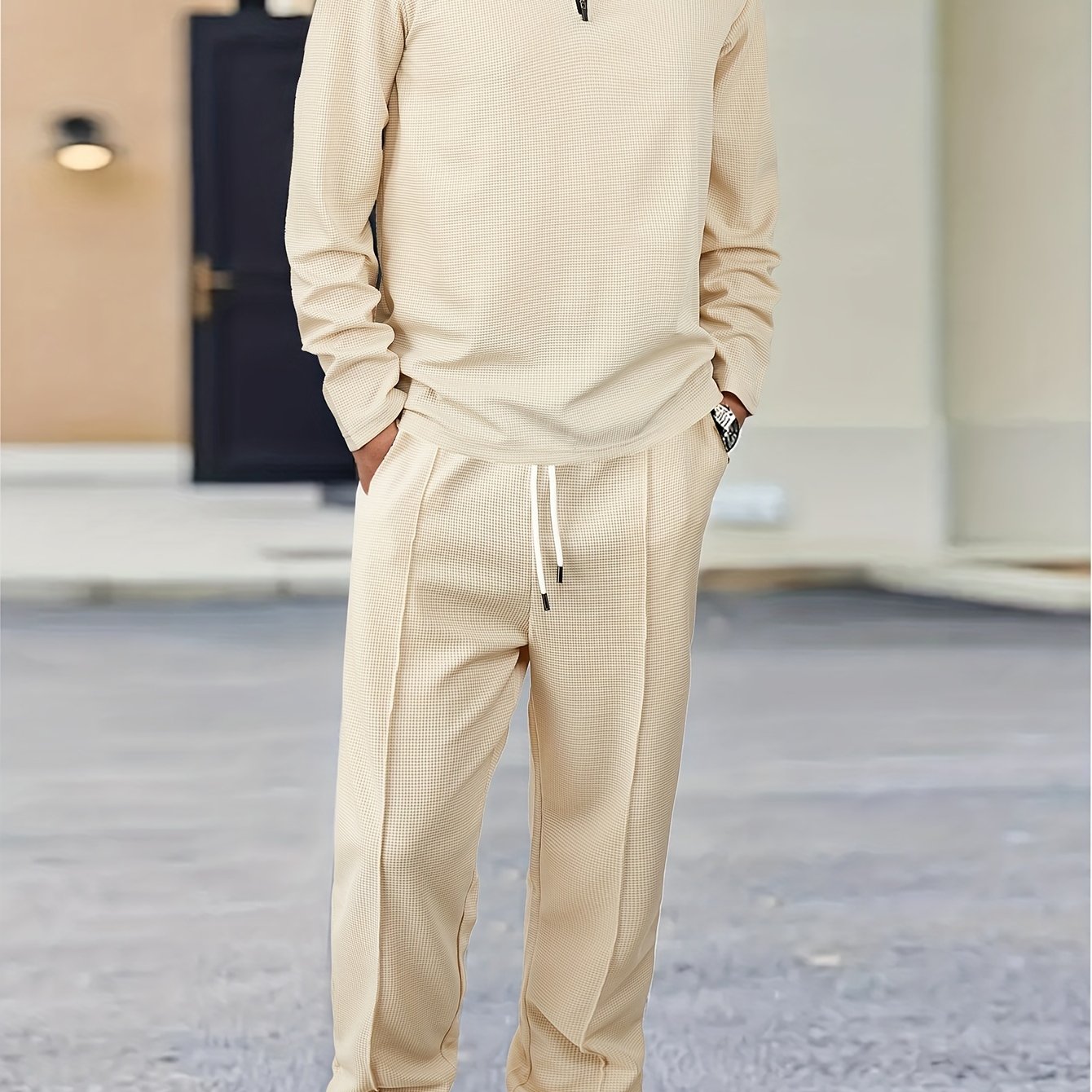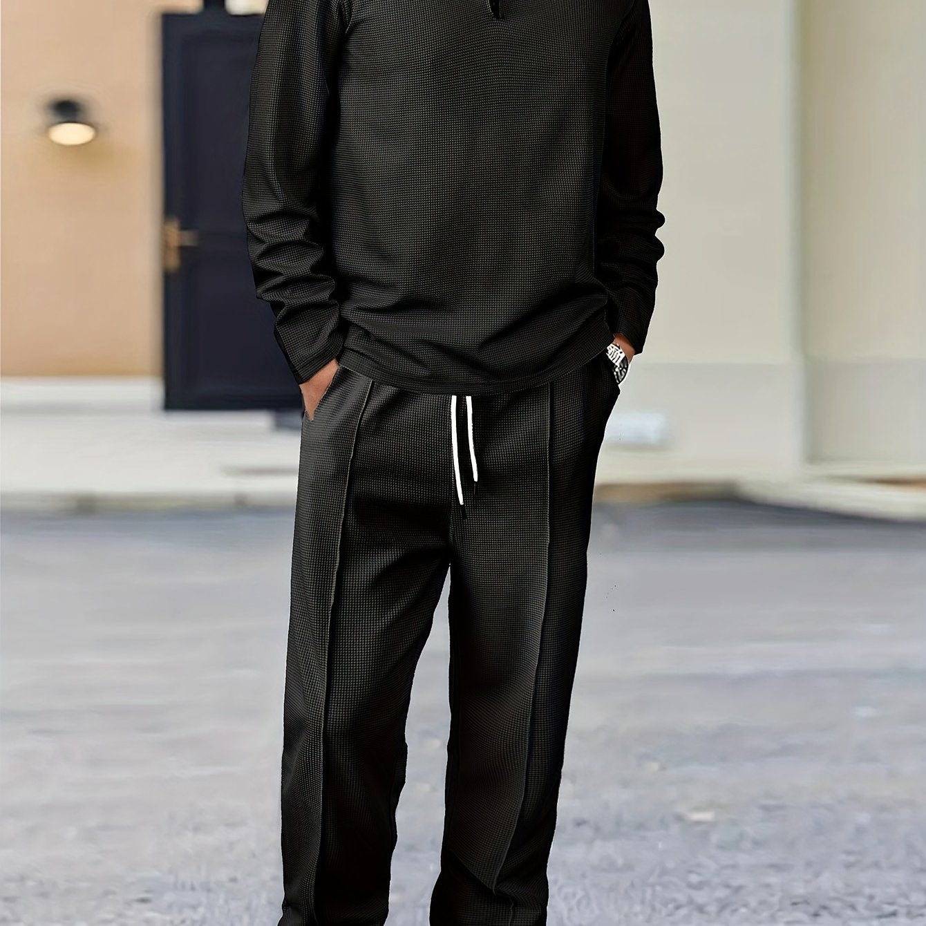 Men's 2-Piece Knitted Set, Pullover Sweatshirt & Drawstring Pants