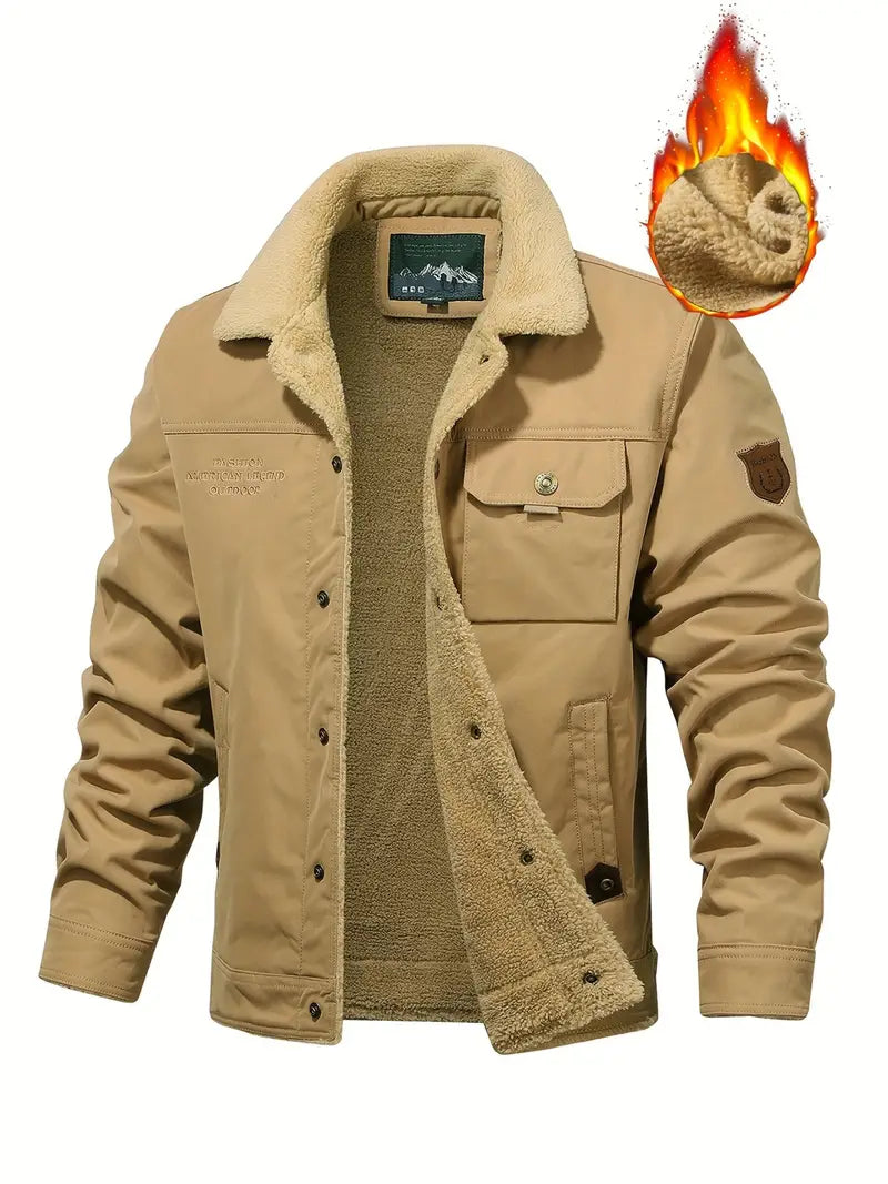 Men's Casual Warm Jacket with Flap Pockets, Fleece Lining - Fall & Winter Essentials, Perfect Gift for Boyfriend & Dad
