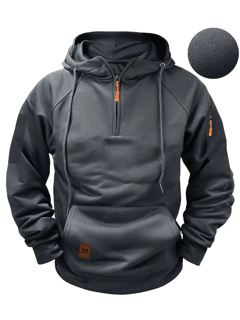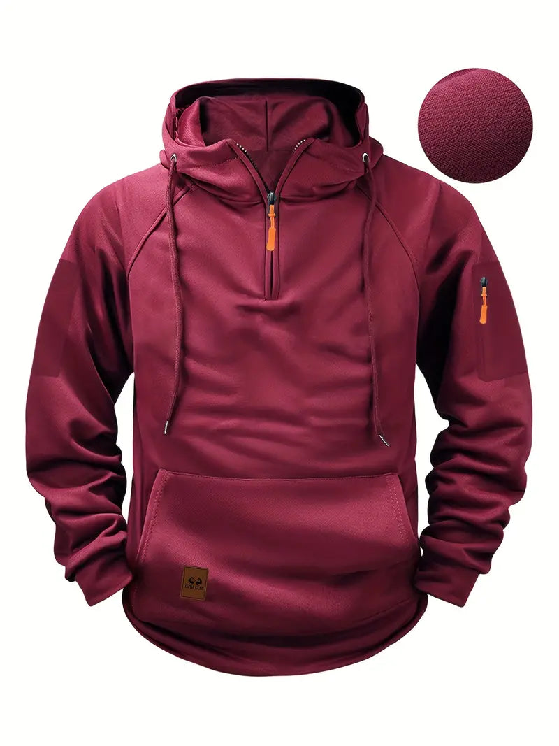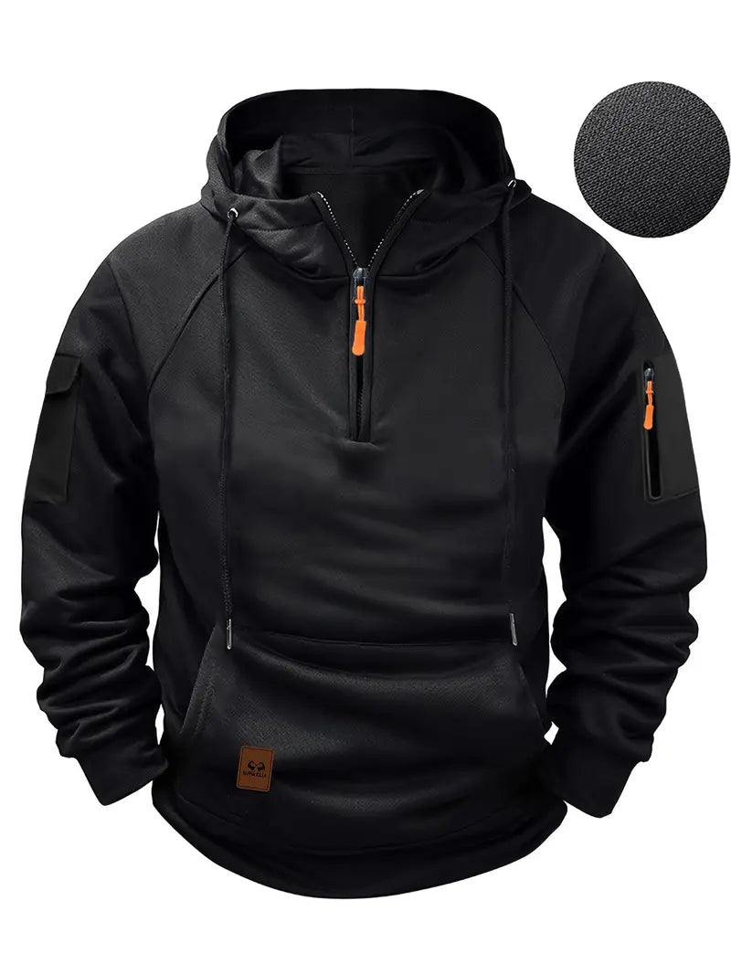 Men's Hooded Henley Shirt - Long Sleeve Pullover with Pockets - Perfect for Autumn/Winter Outdoor Activities
