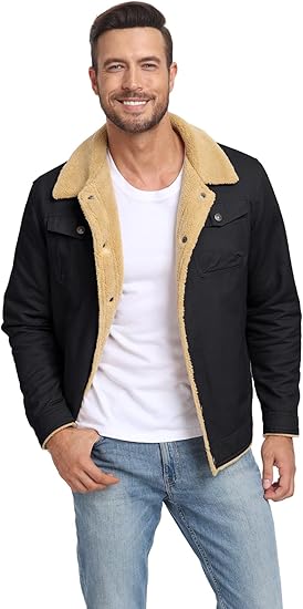 Men's Cotton Cargo Jackets Winter Sherpa Lined Fleece Jackets