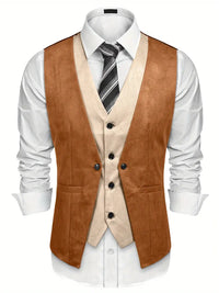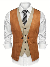 Men's Waistcoat Suede Vest Layered Style Dress Vest