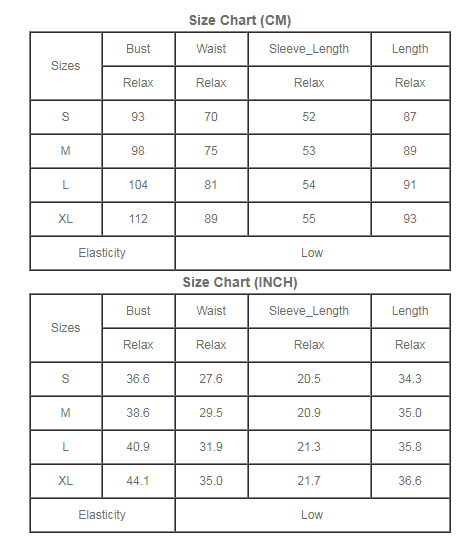 Sizes | Bust | Waist | Sleeve_Length | Length |