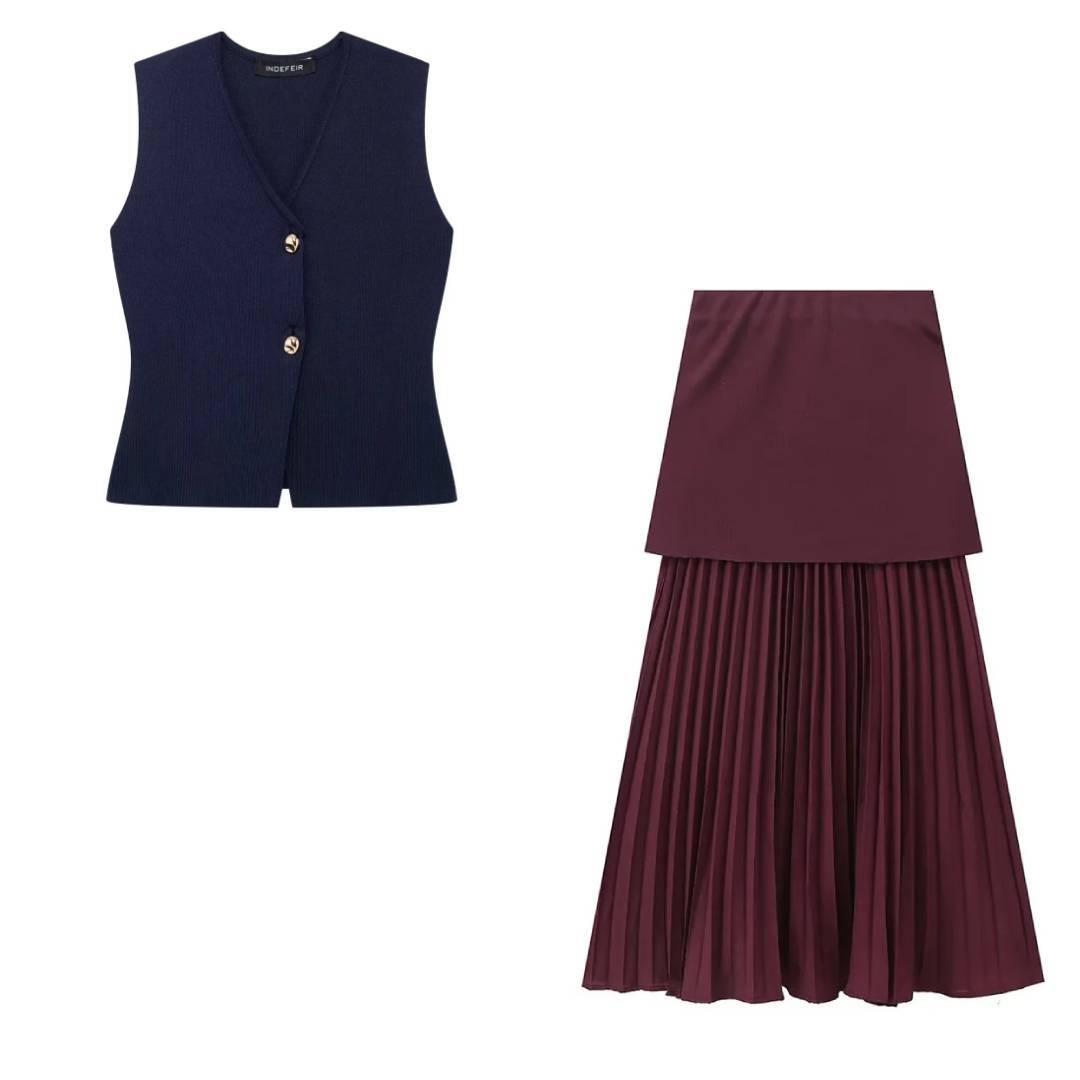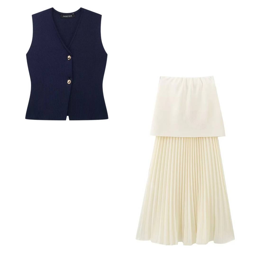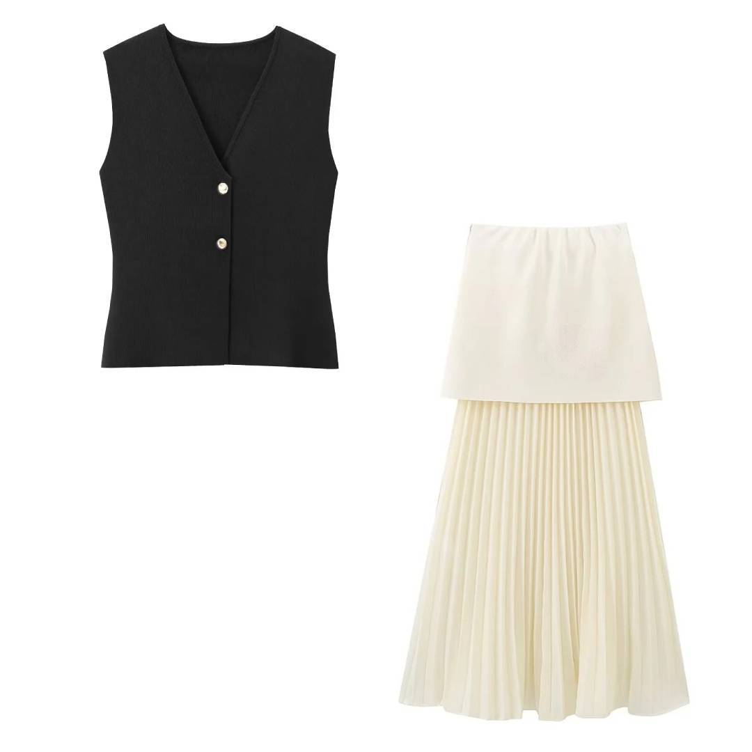 Indulge in the timeless charm of the Peyton™ 2-Piece Knitted Set. Designed for effortless elegance. this summer-ready ensemble features a structured V-neck vest top that pairs beautifully with a flowing ankle-length skirt. creating a look that's both sophisticated and relaxed. The premium knitted fabric offers a luxurious feel. ensuring comfort without compromising on style. Perfect for any occasion. from casual outings to more formal events. this versatile set adds a touch of refinement to your wardrobe. Elevate your fashion game with the Peyton™ Set—where comfort meets timeless beauty.