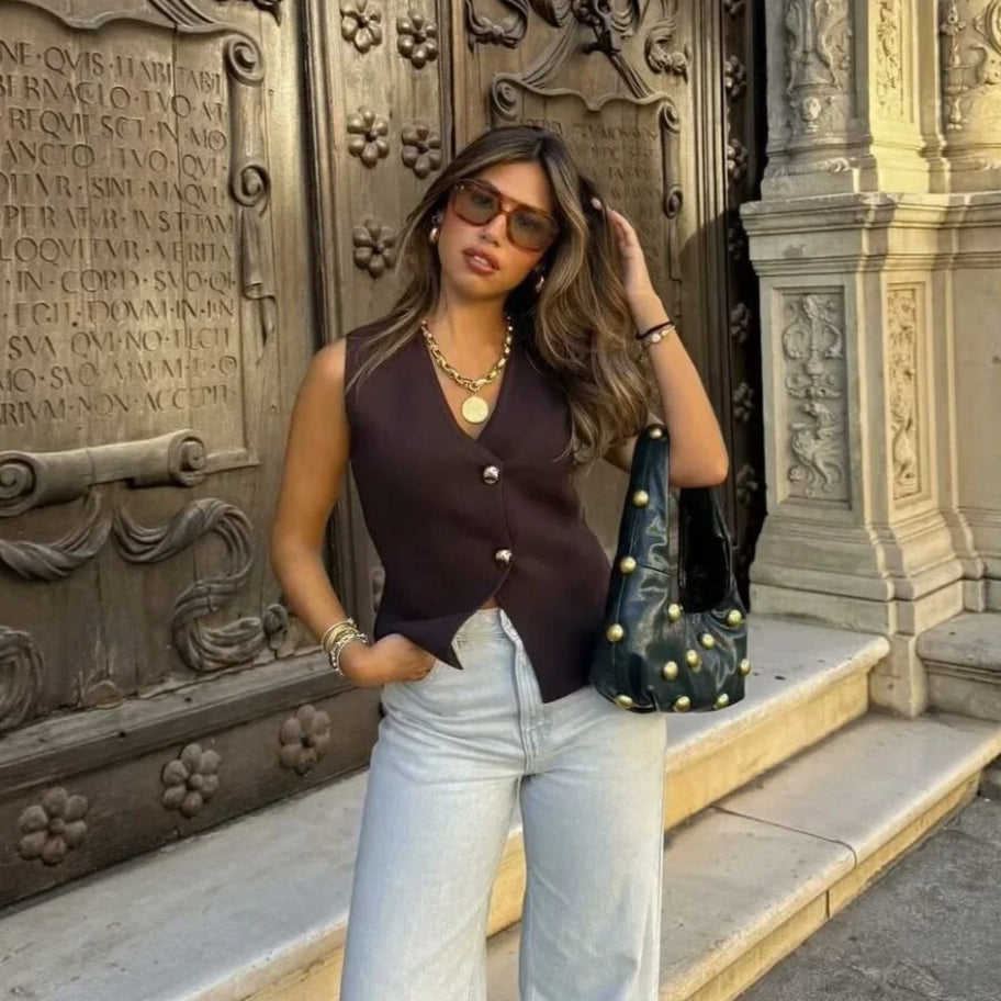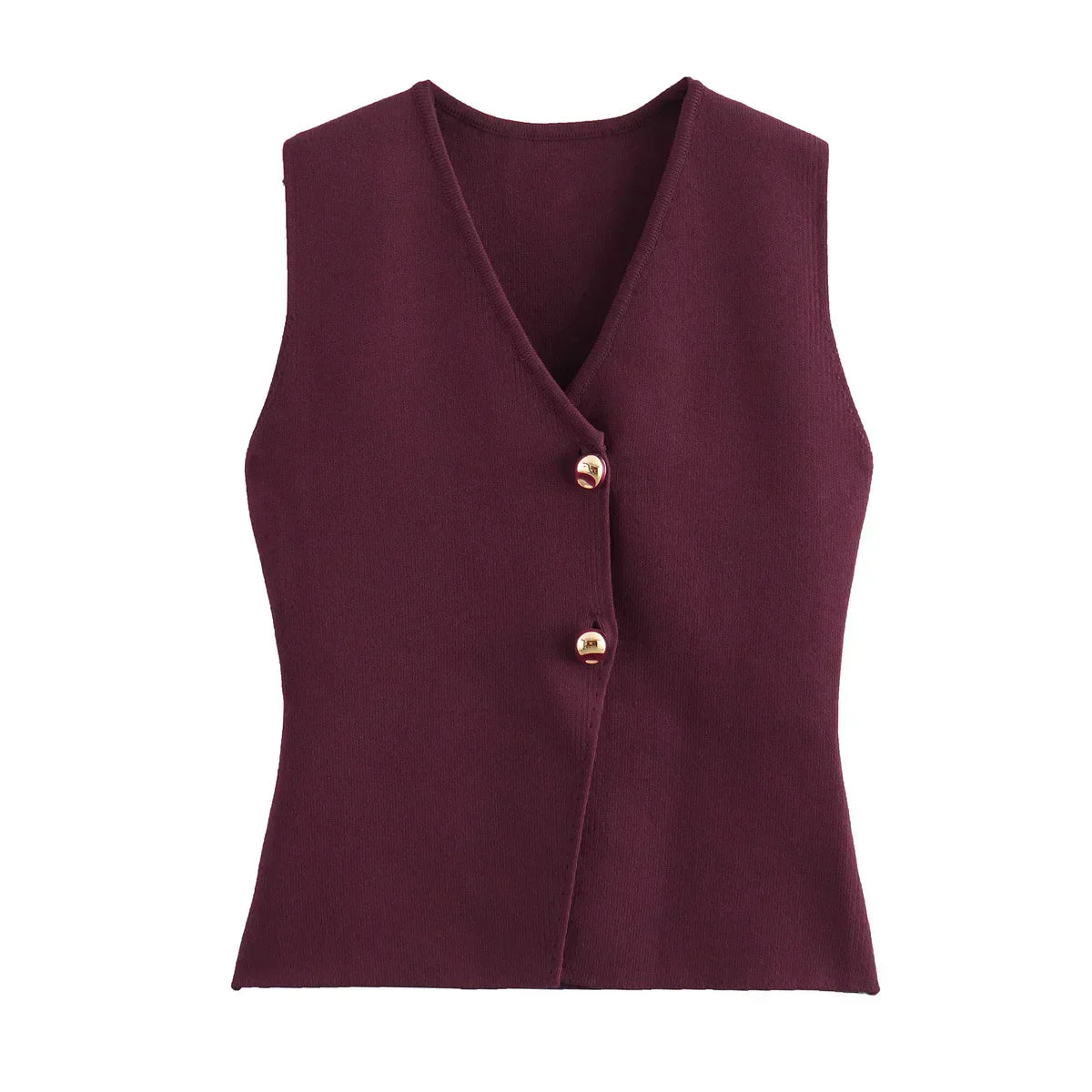 - Chic V-Neck Vest: A sleeveless top with button detailing and a tailored fit for a sleek. modern look.