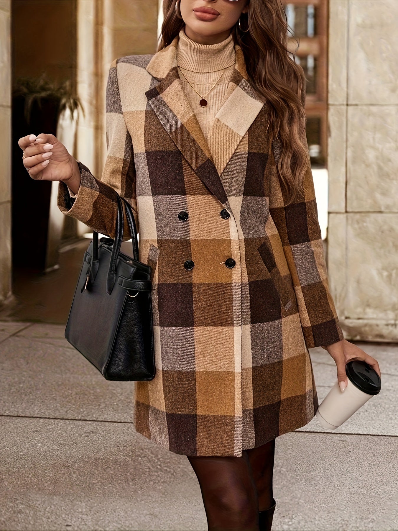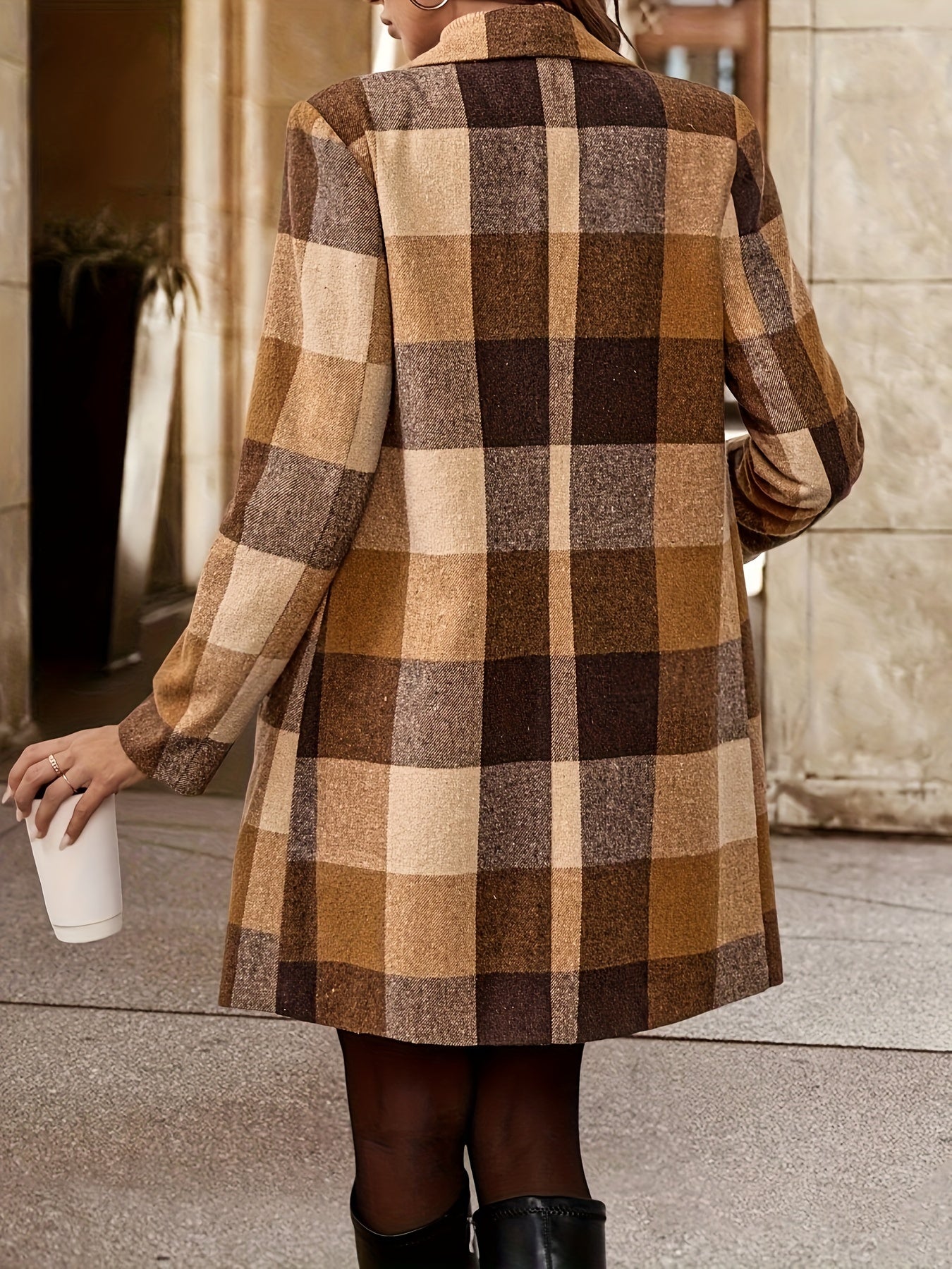 Plaid Long Sleeve Trench Coat for Women - Open Front