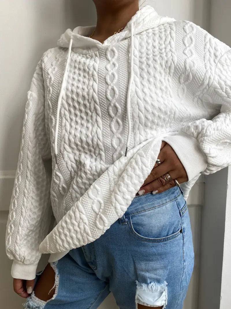 Plus Size Casual Ribbed Hoodie – Solid, Long Sleeve, Slight Stretch, Drawstring Sweatshirt