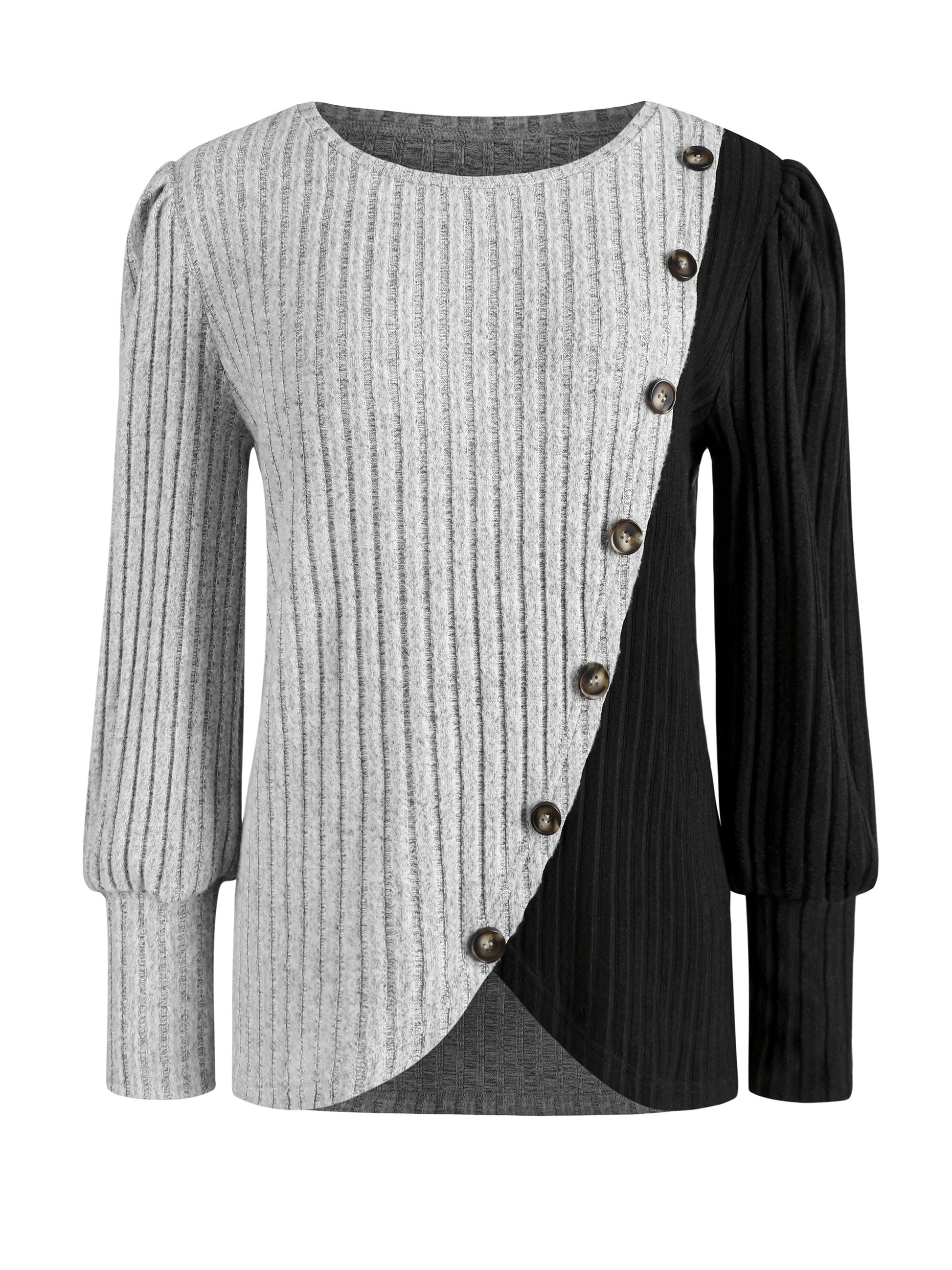 Ribbed Crew Neck T-shirt, Long Sleeve with Button Detail.
