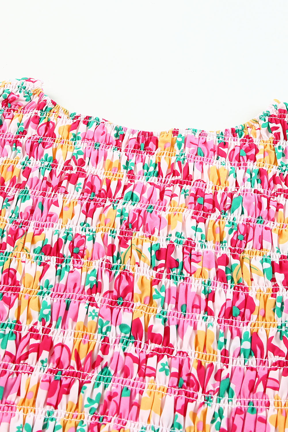 Look elegant and stylish in our Smocked Bodice Ruffle Trim Floral Dress. This vintage-inspired dress adds a touch of class to any occasion. Perfect for summer parties. weddings. or fancy dinners. its smocked bodice and ruffled trim create a beautiful silhouette. Dress to impress and stand out in this elegant and simple floral dress.
