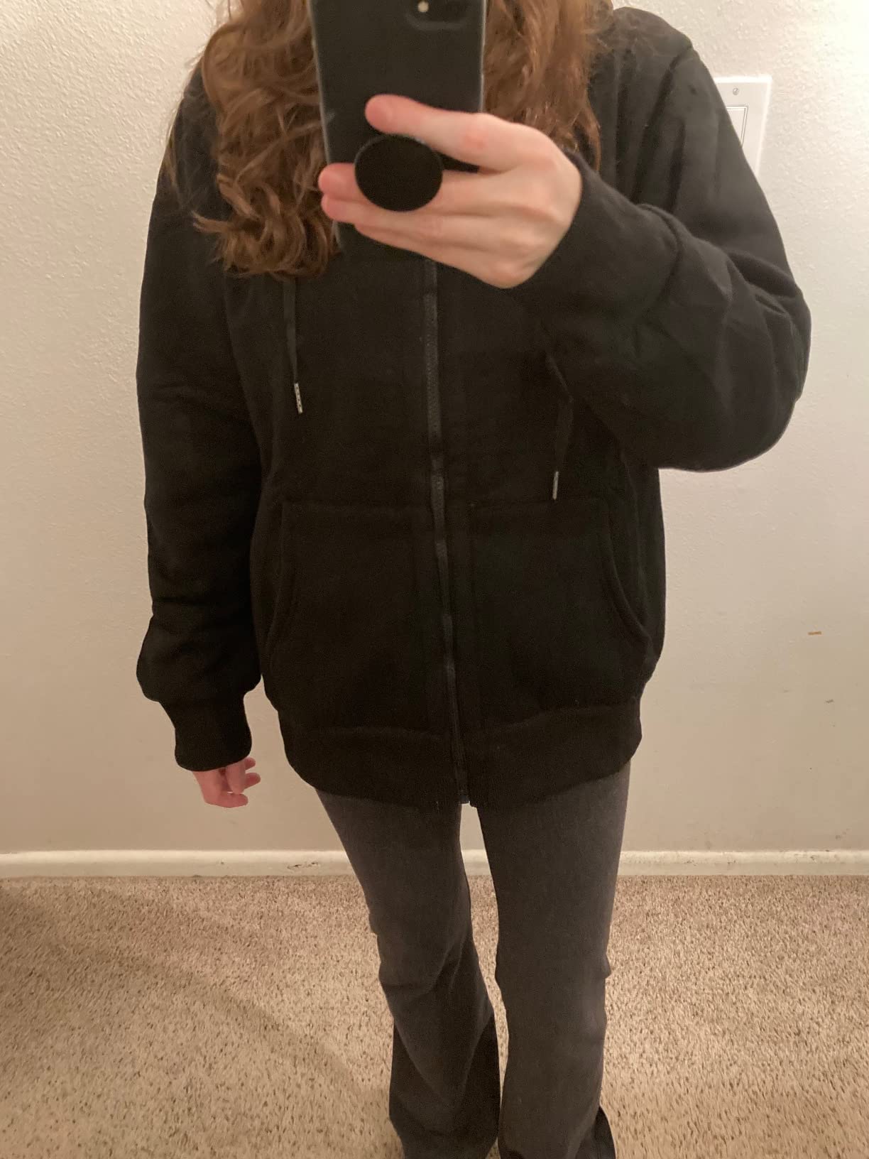 I love the inside lining and how it goes all the way through the sleeves. I wanted it to cover my butt and have a baggy fit. I'm 5'4" and 120 lbs and the XL fit exactly how I wanted.