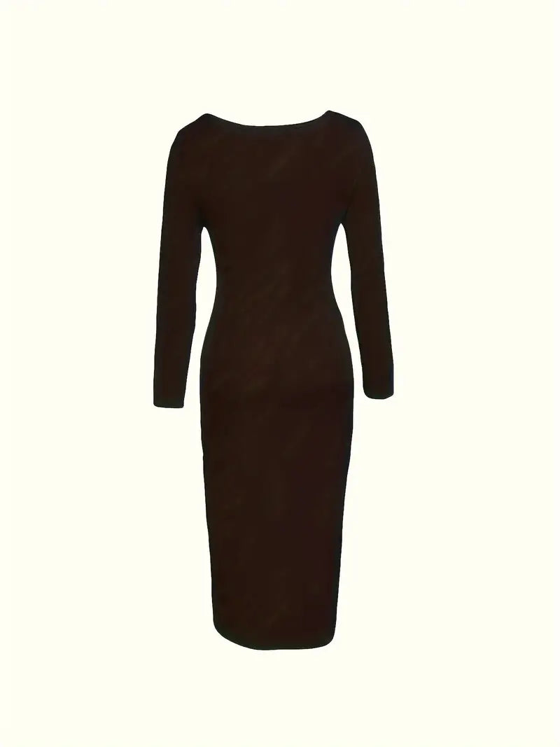 Squared Neck Solid Maxi Dress, Casual Long Sleeve Bodycon Dress, Women's Clothing