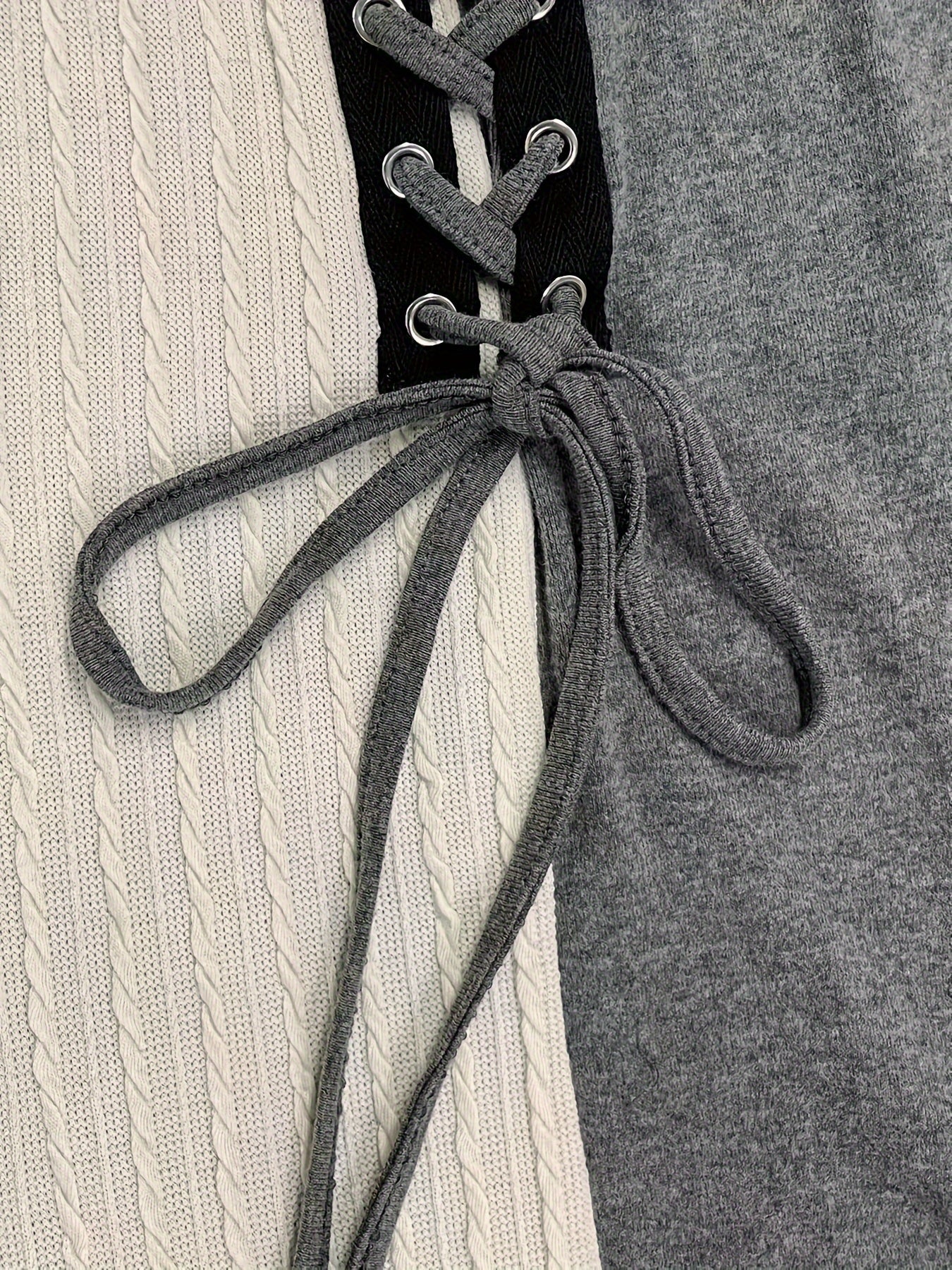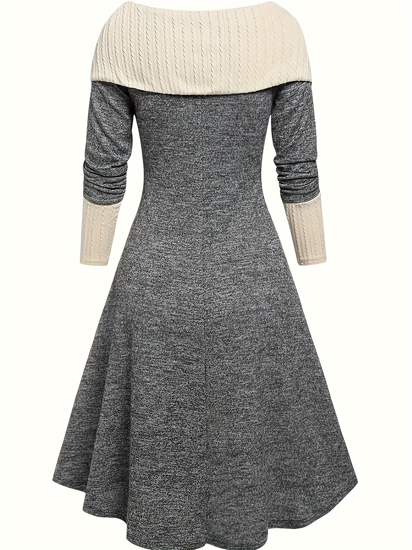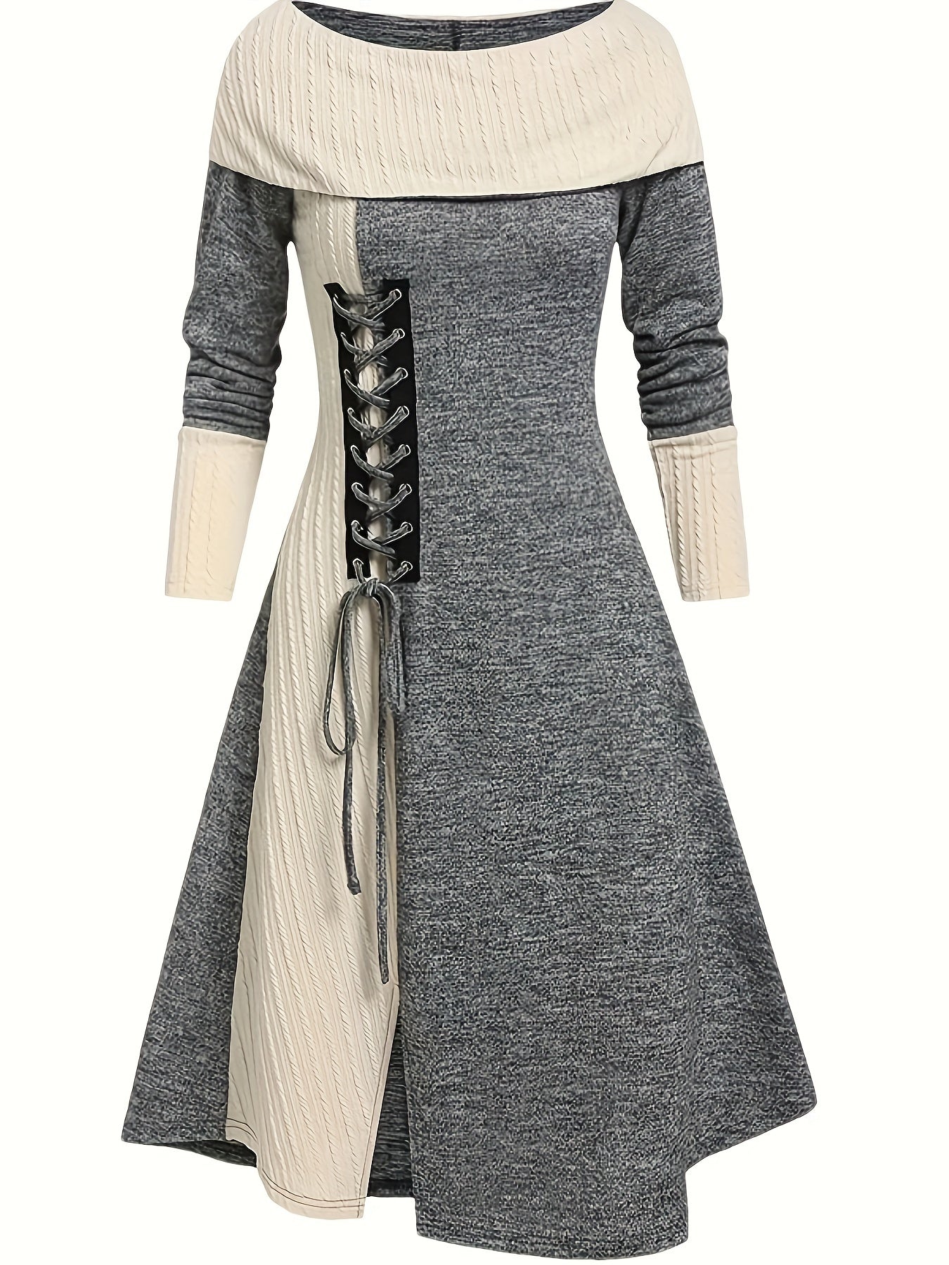 Striped Collar Knit Dress with Lace-up Detail, A-Line Fit.