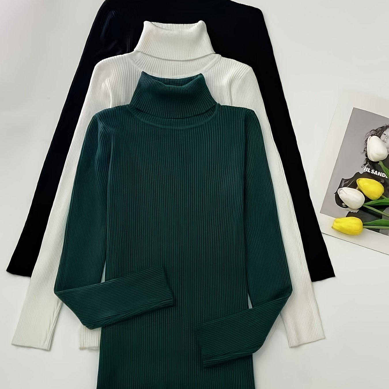 Turtleneck 3-Pack Sweaters - Casual Solid Color Long Sleeve for Fall & Winter