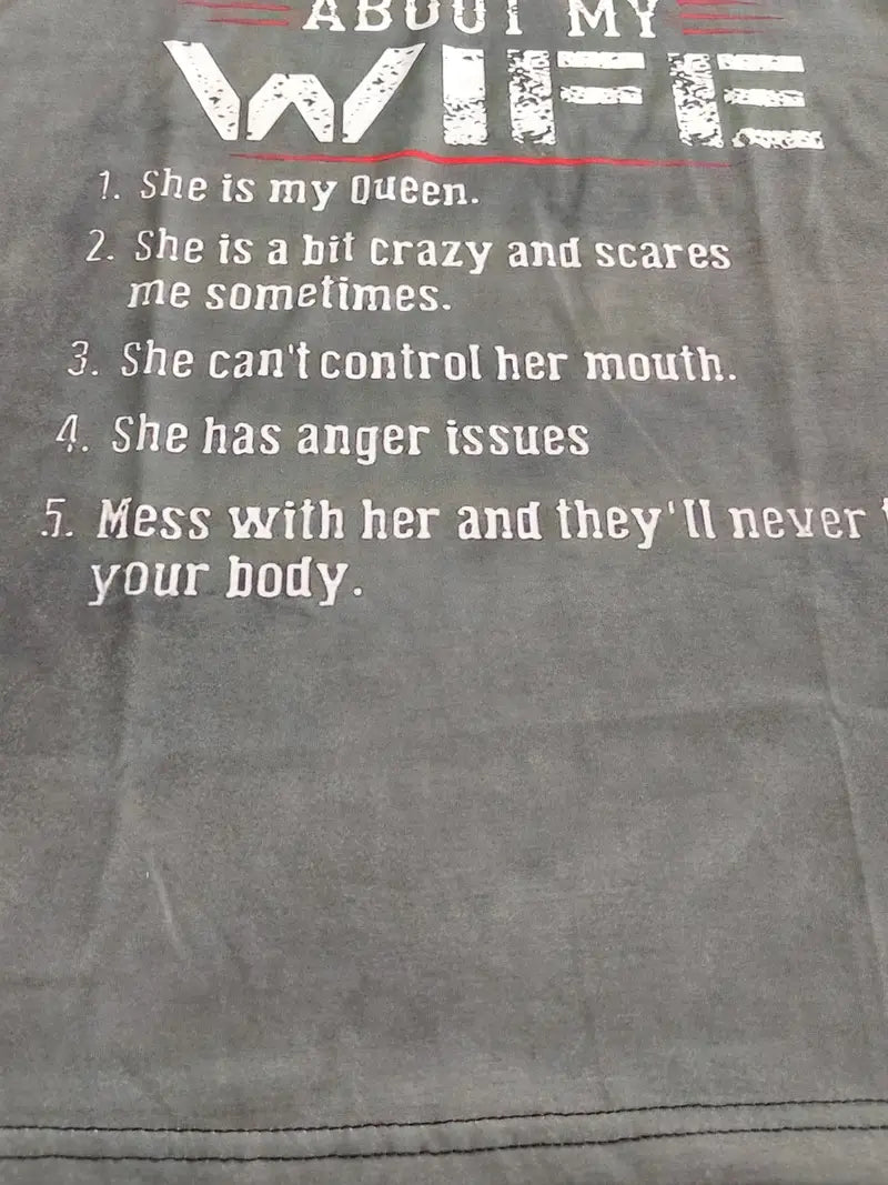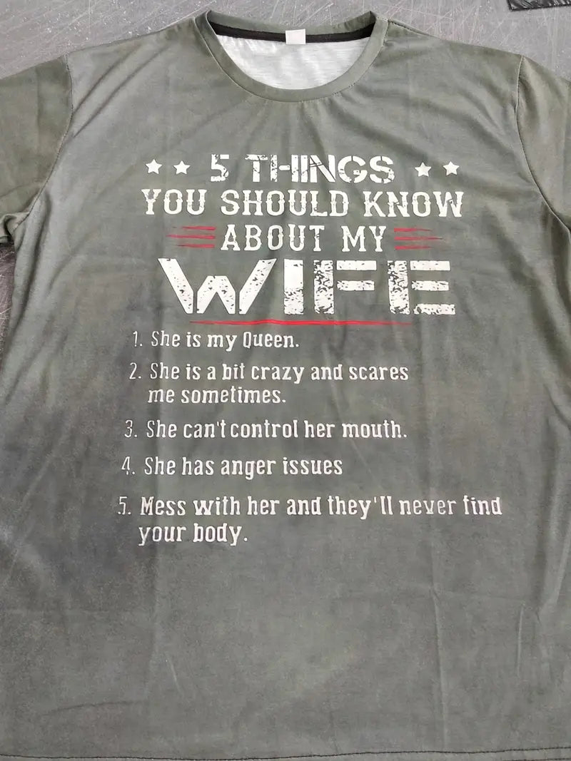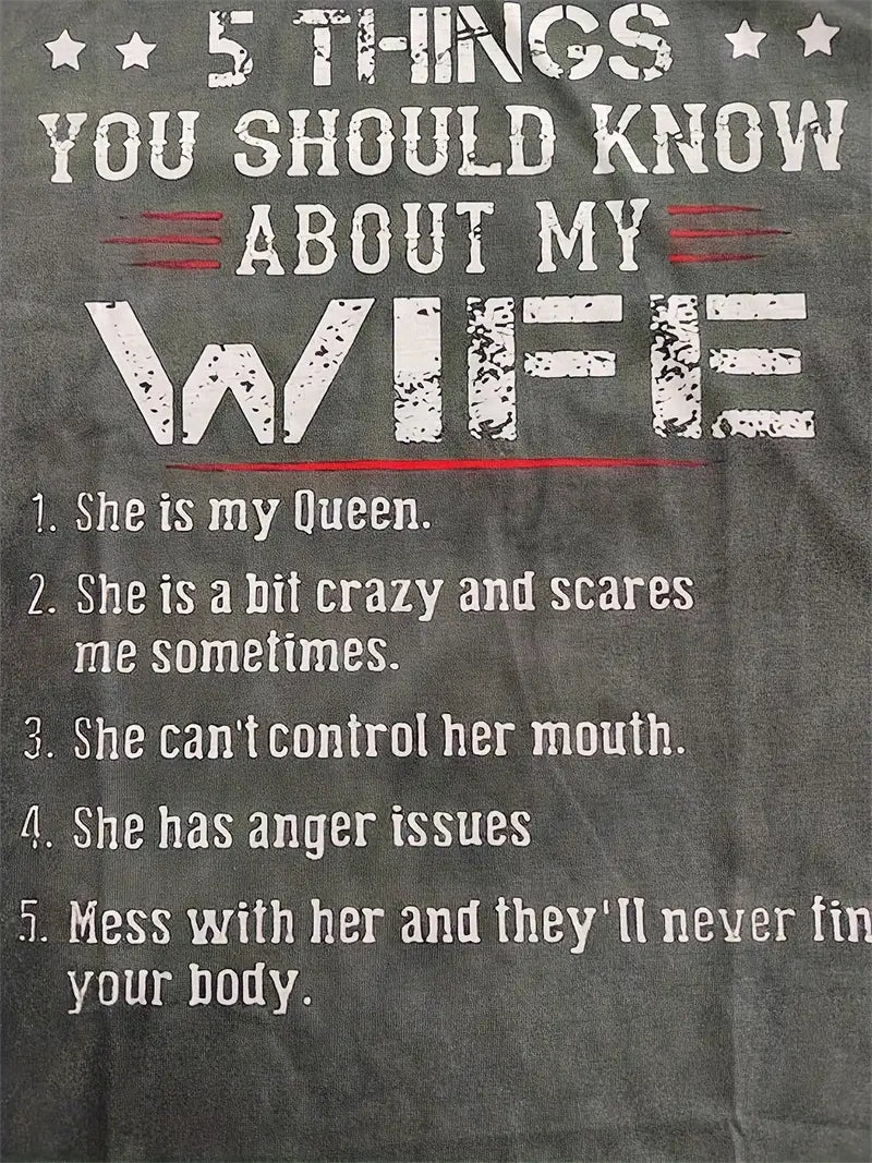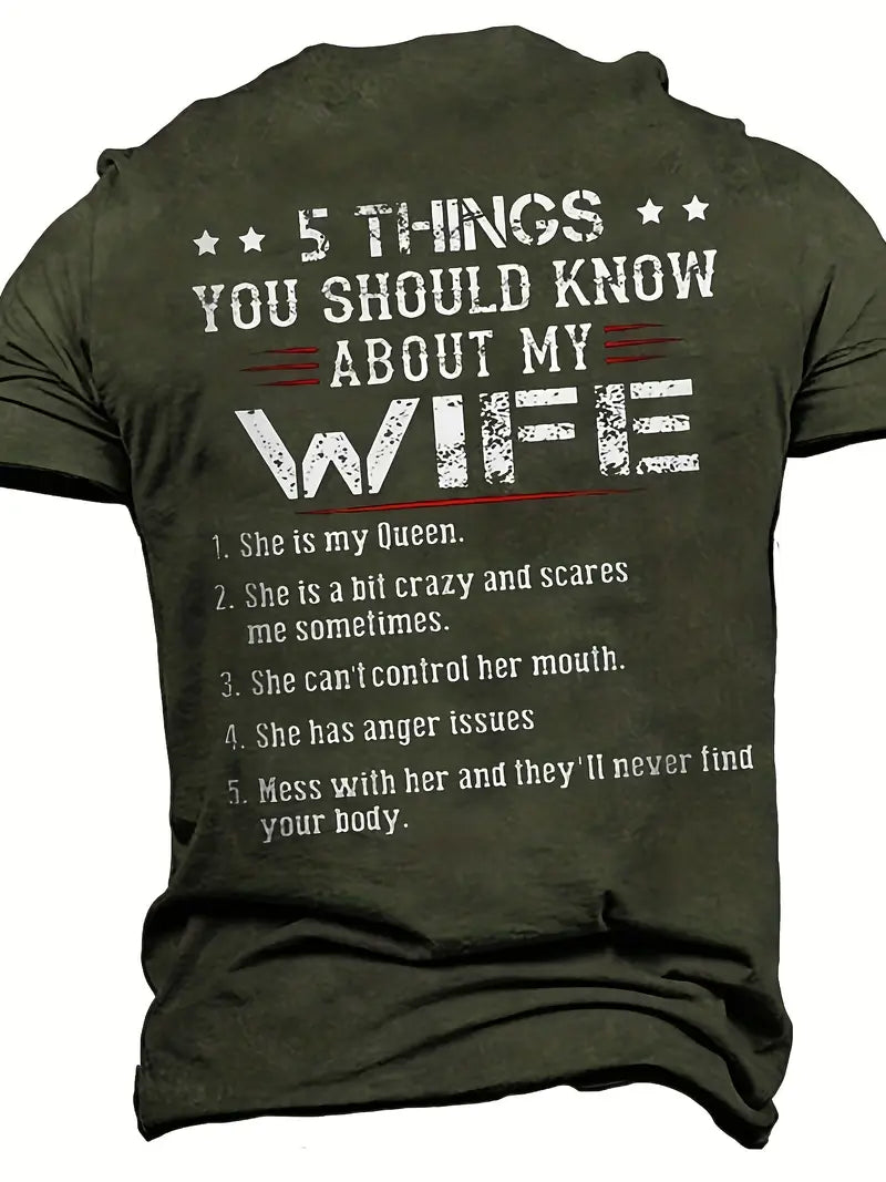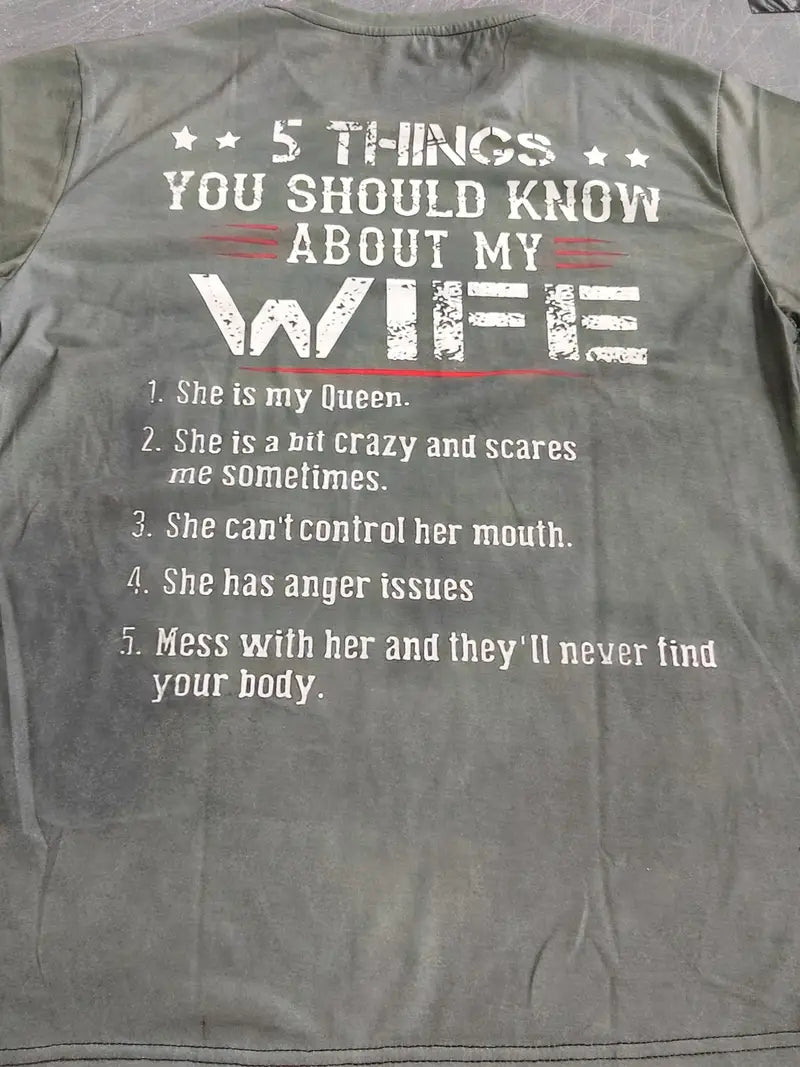 - 5 Things You Should Know About My Wife Has Tattoos (on back) T-shirt. Great gift for Husband