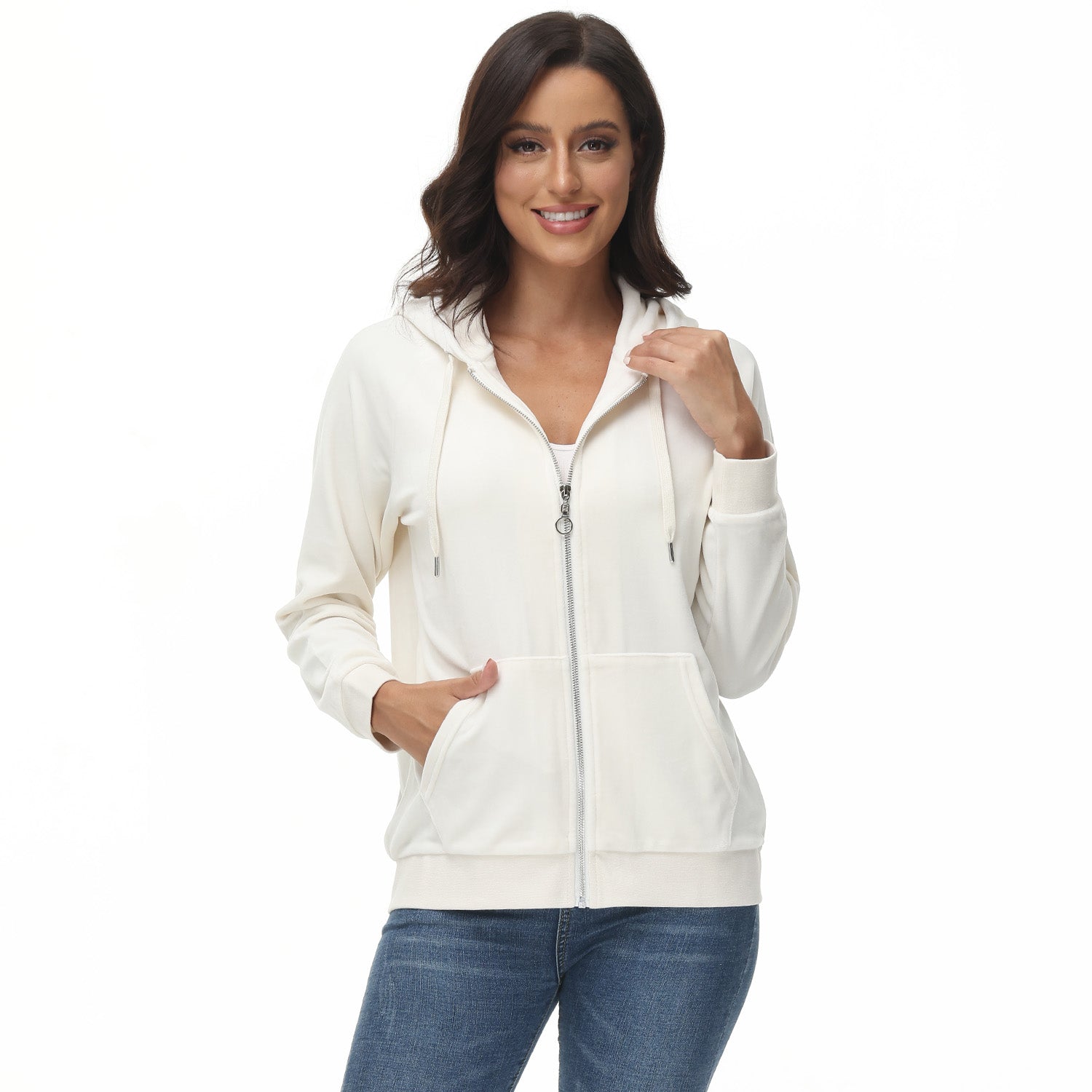 Women's Velour Fleece Hoodie Jacket Slim Fit Outwear