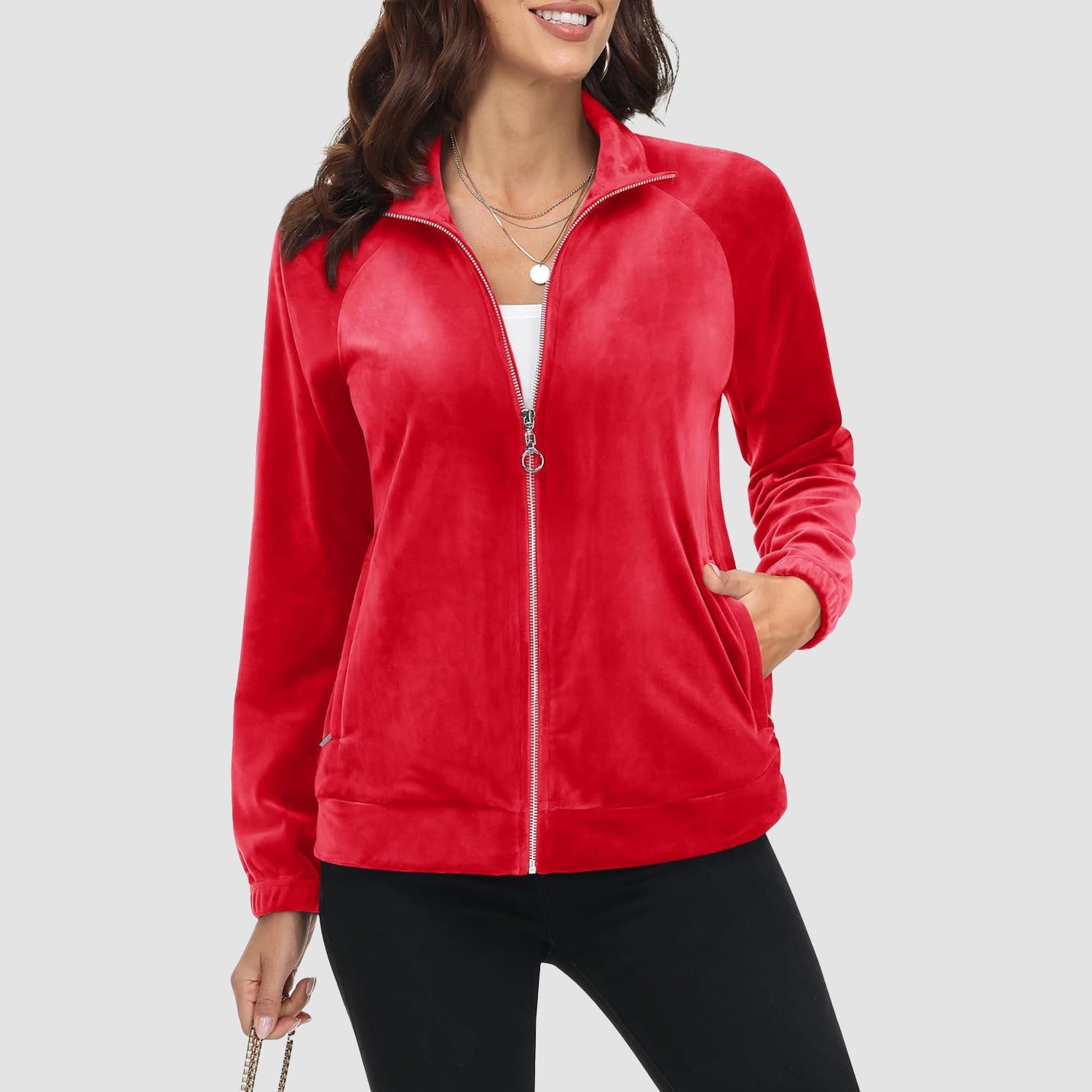 Women's Velour Jackets Full Zip Up Fleece Jacket With Zipper Pockets Soft Winter Jackets