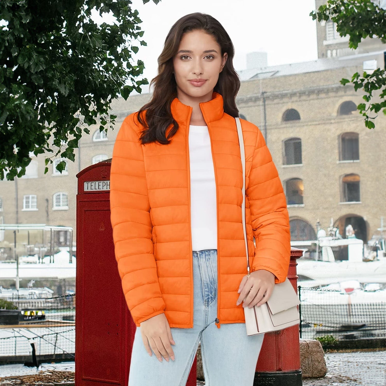 Women's Lightweight Puffer Jacket Stand Collar Full Zip Quilted Lined Winter Coat