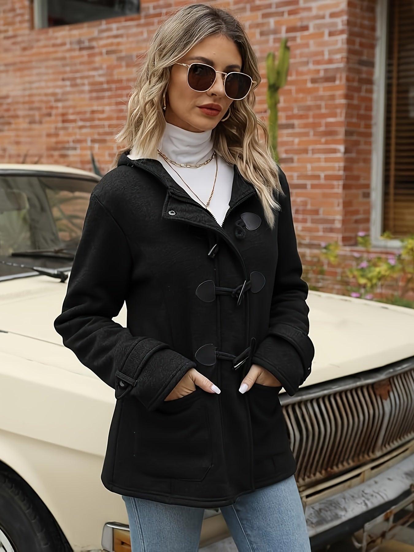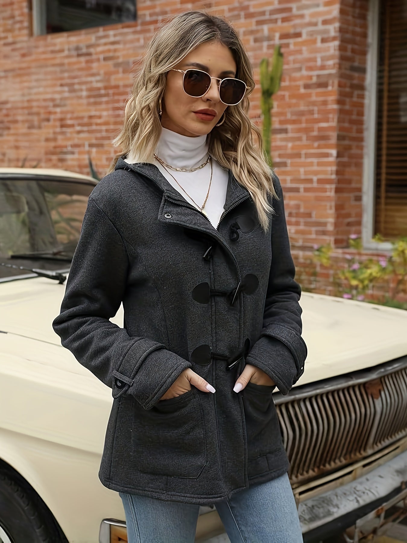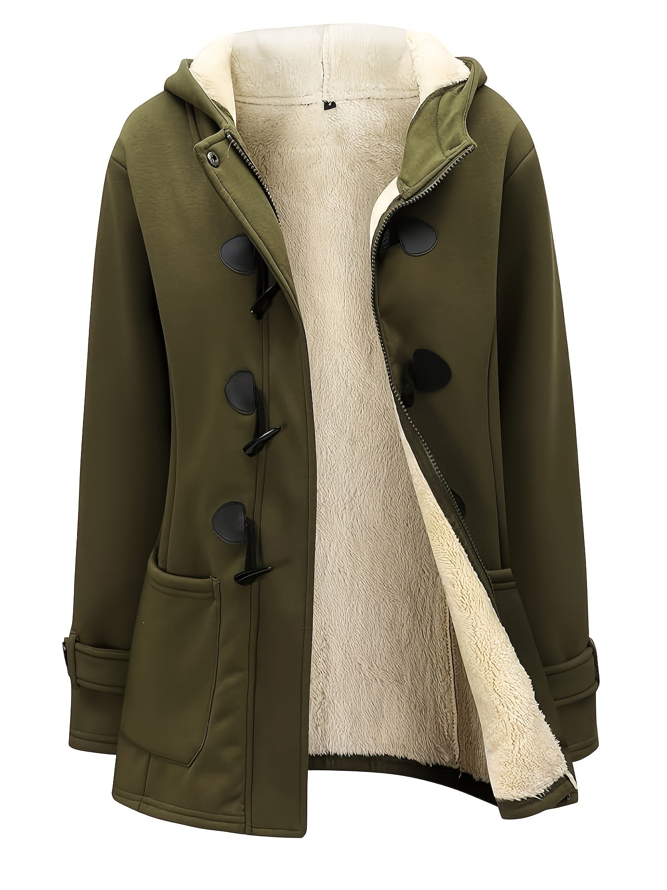 Women's Fashion Jacket Duffel Button Coat Hooded Winter Warm Jacket Sweatshirt