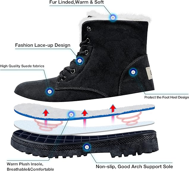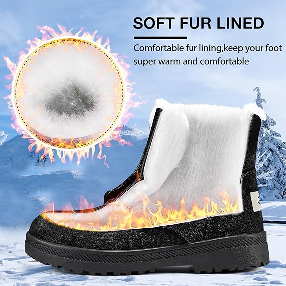 Snow boots for women lining use the fine artificial short plush, completely wrapped your feet. Keep your feet warm and dry in freezing winter days.