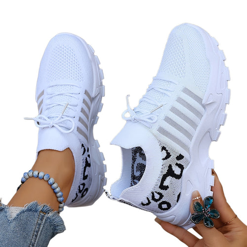 Women's Leopard Print Lace-up Running Shoes, Breathable Platform (Plus Size)