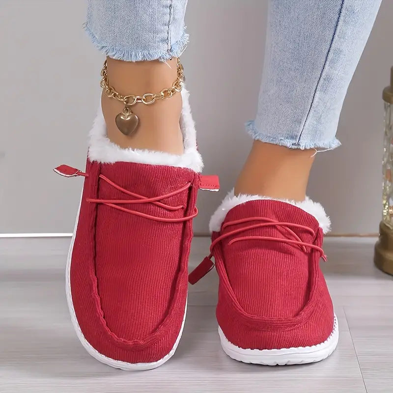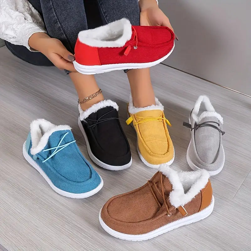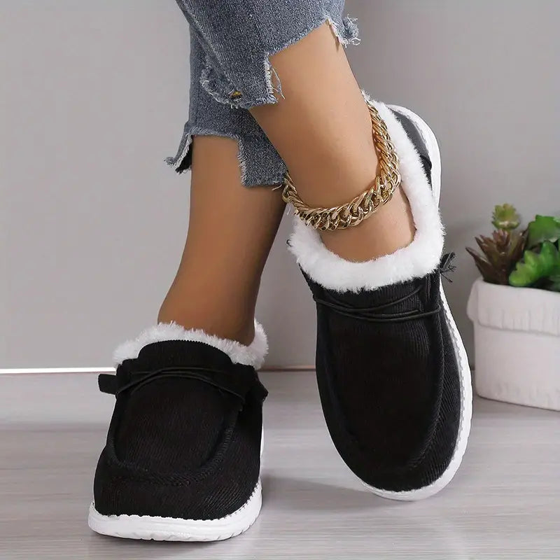 Women's Plush Velvet Slip-On Boots - Cozy Round Toe, Warm Lining, Non-Slip Sole