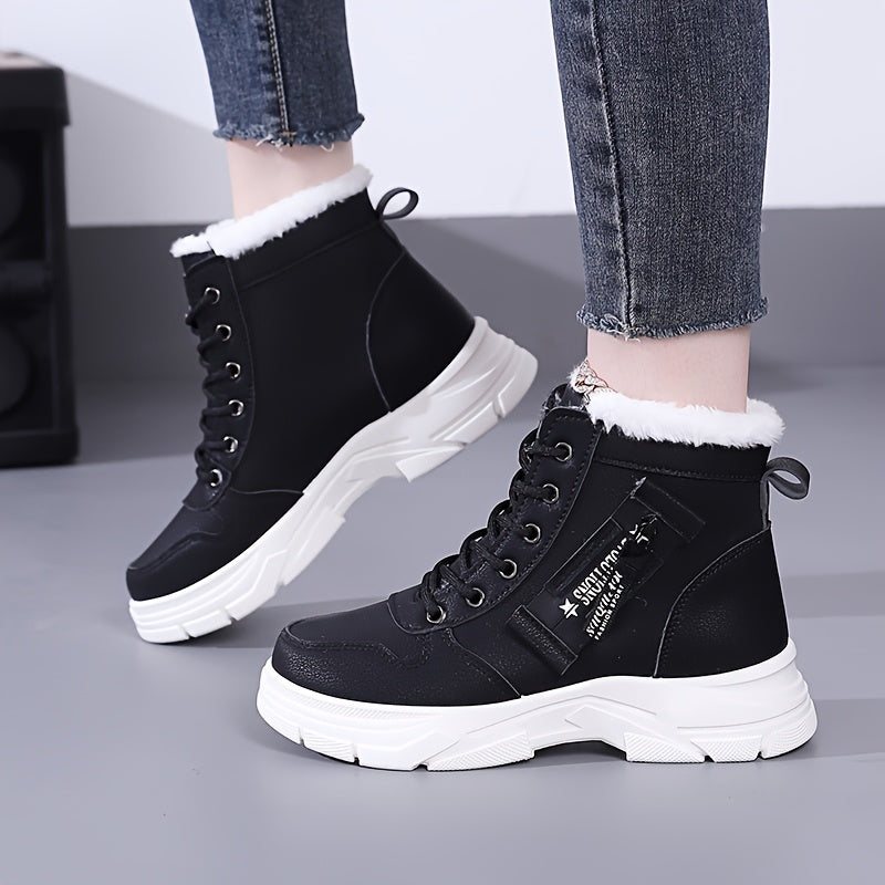 Women's Winter Warm Snow Boots with Side Zipper - Comfortable Thick Sole, High-Top Sneakers in Solid Color, Snow Boots, Outdoor Shoes