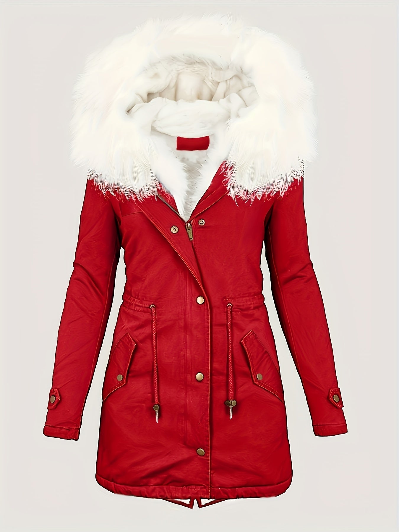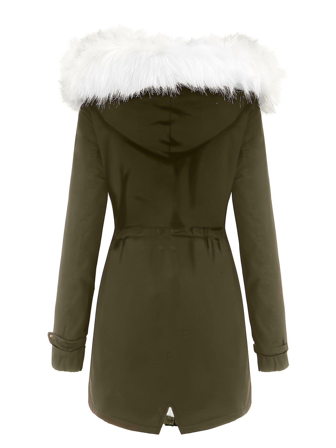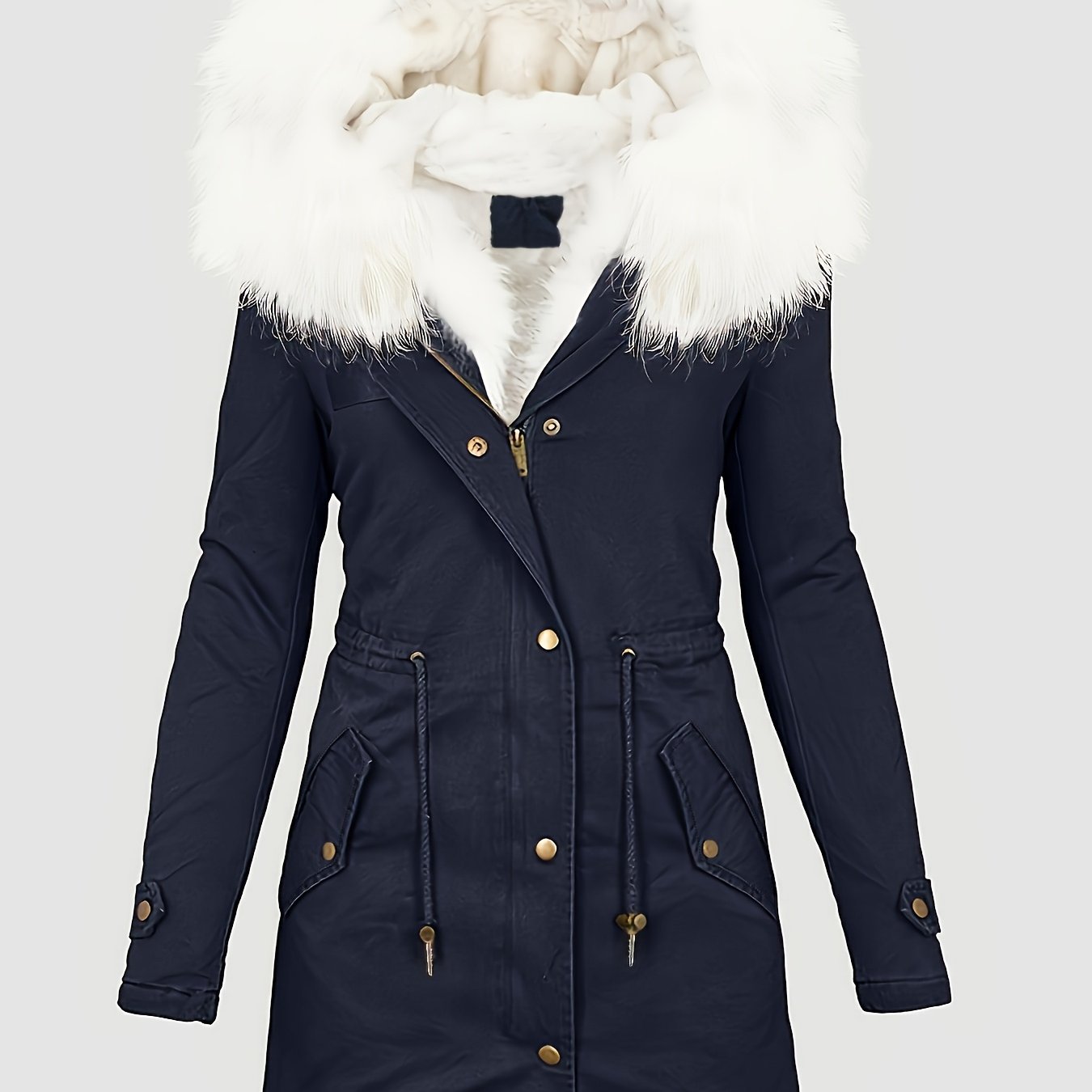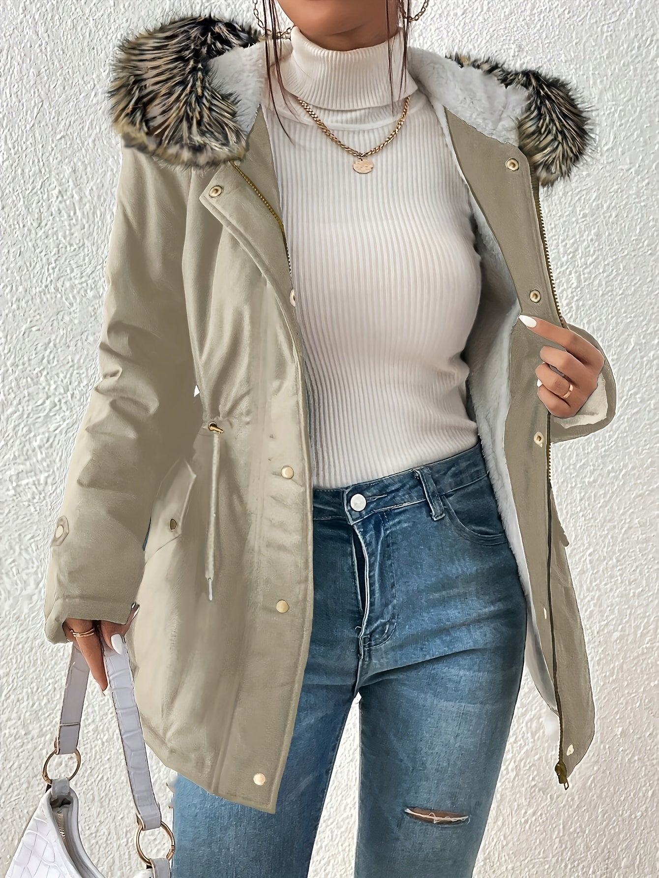 Zip-up Fuzzy Trim Hoodie Coat, Casual Faux Fur Lined, Drawstring Waist