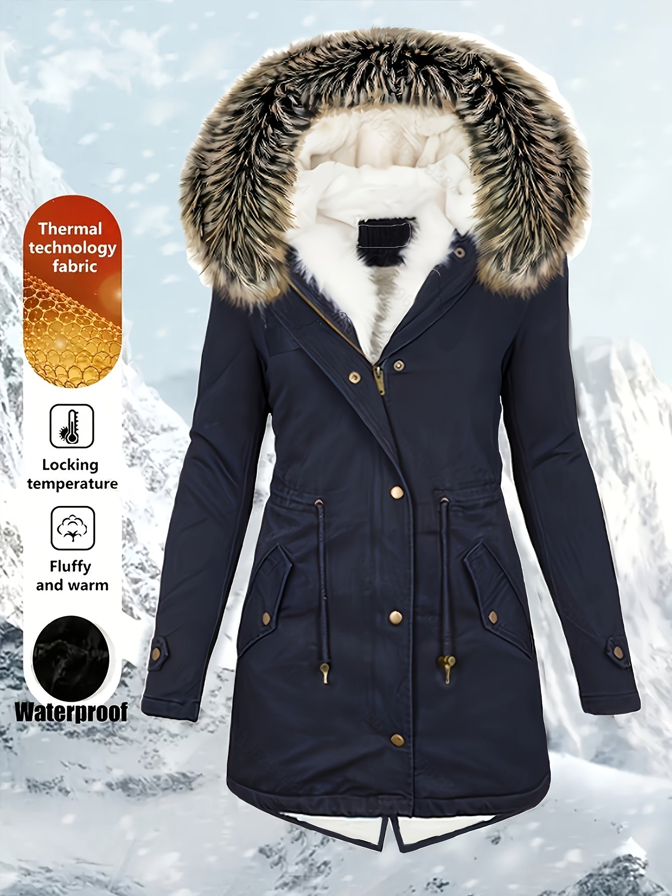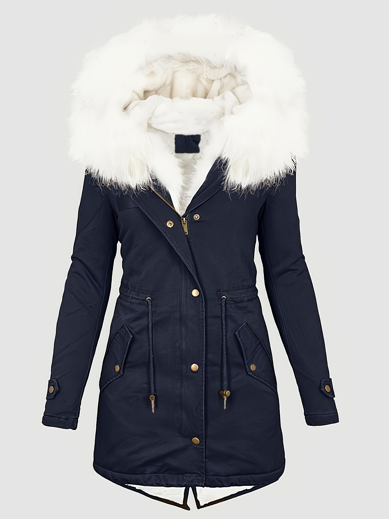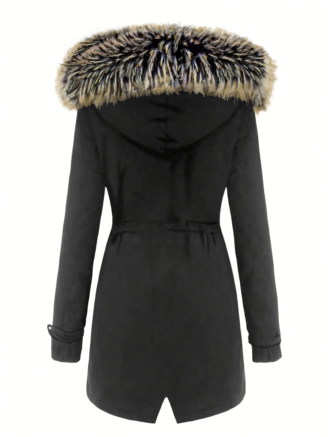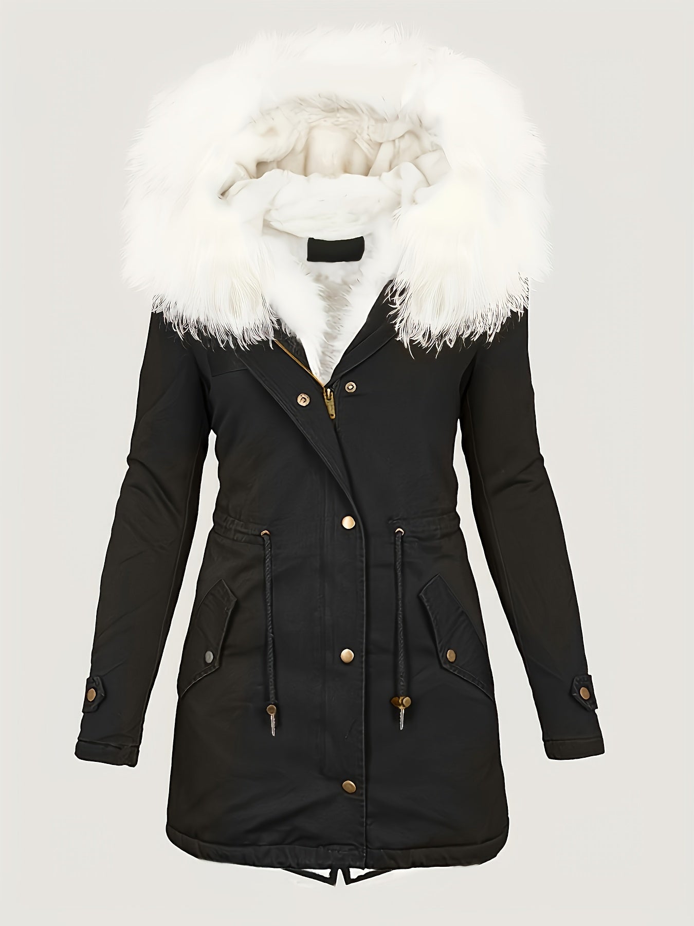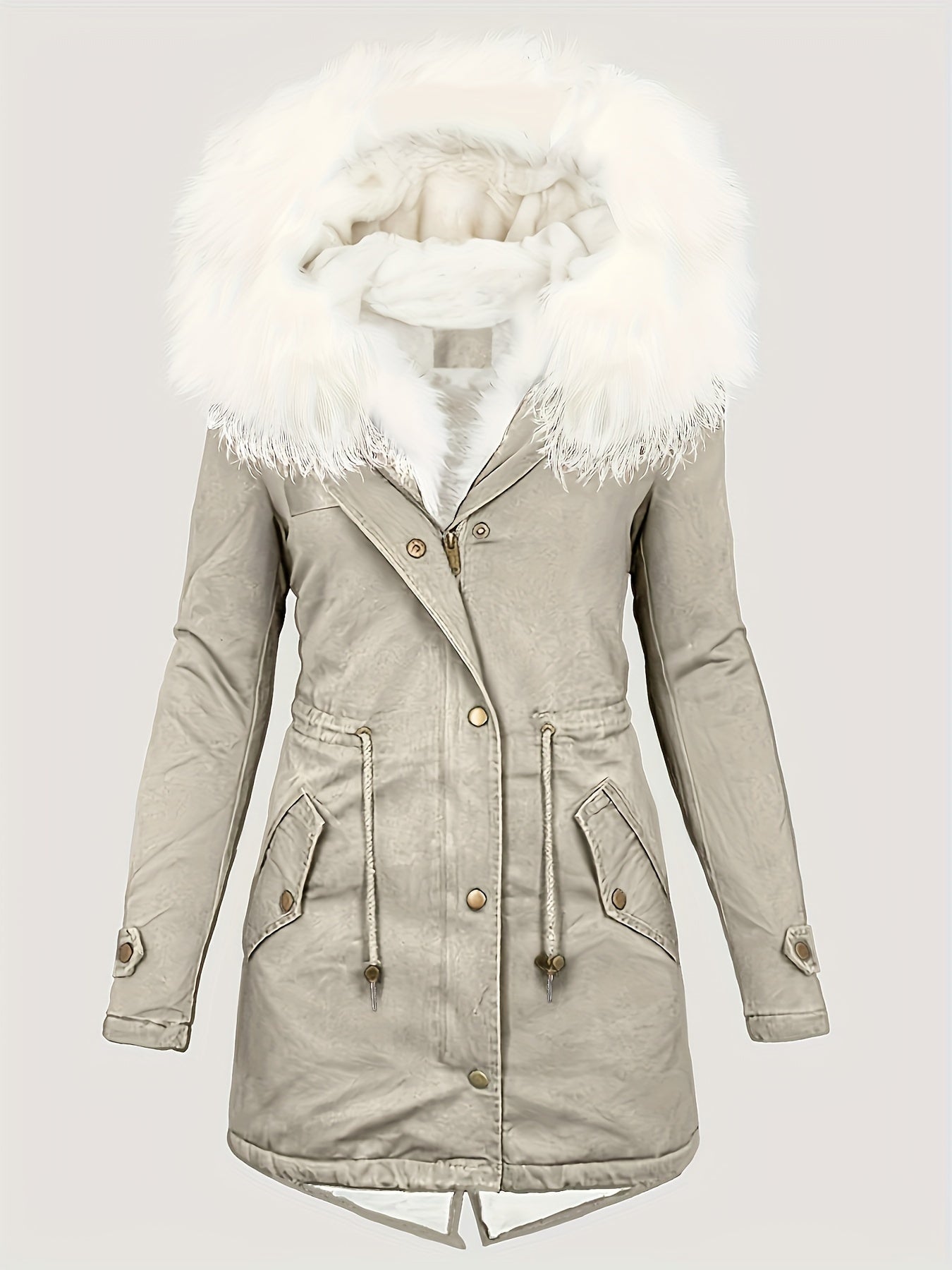 Zip-up Fuzzy Trim Hoodie Coat, Casual Faux Fur Lined, Drawstring Waist