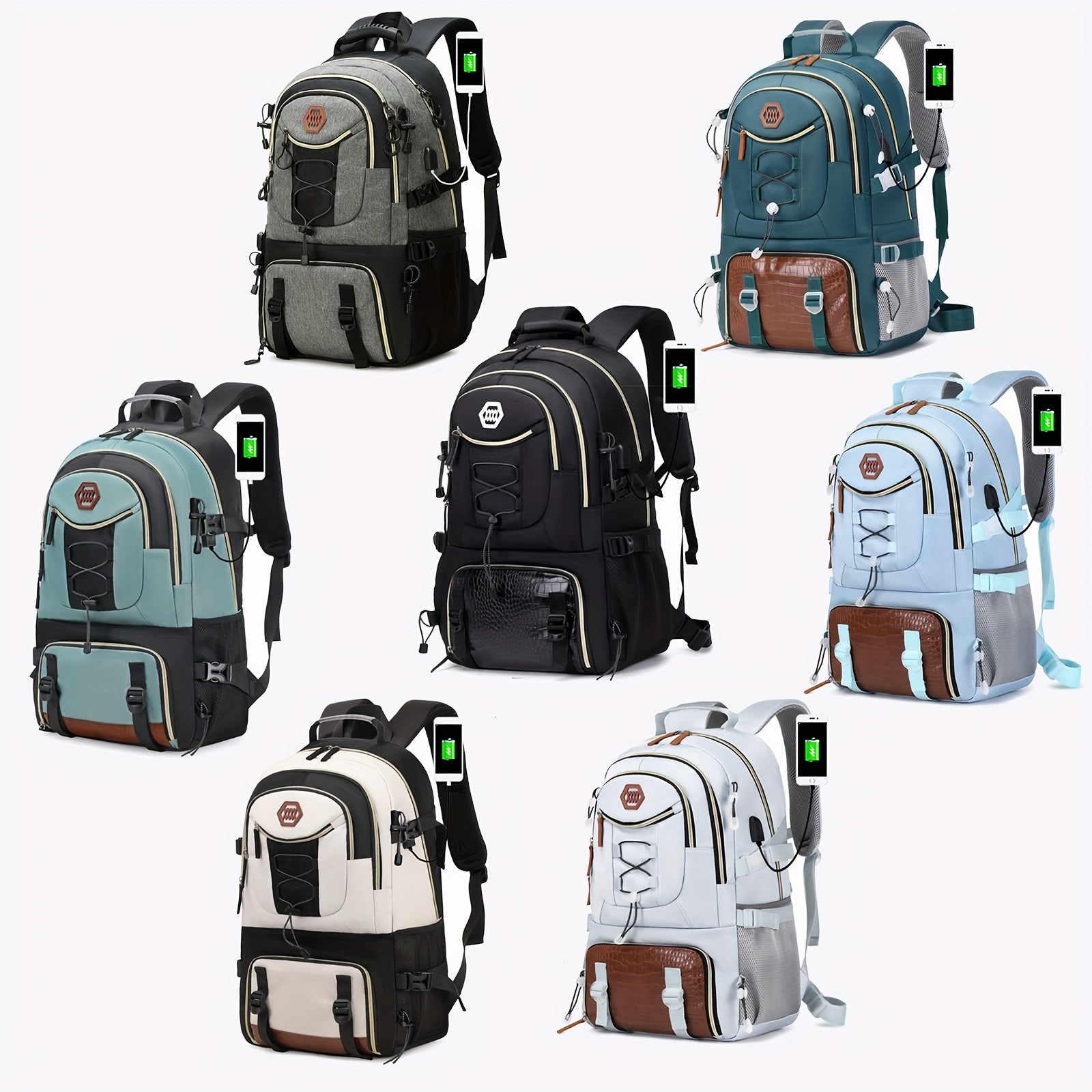 Uma mochila de viagem de grande capacidade para homens, mochila de acampamento para caminhadas de 40 litros com compartimento para sapatos, mochila casual multifuncional, pode acomodar uma mochila para laptop de 17,3 polegadas.