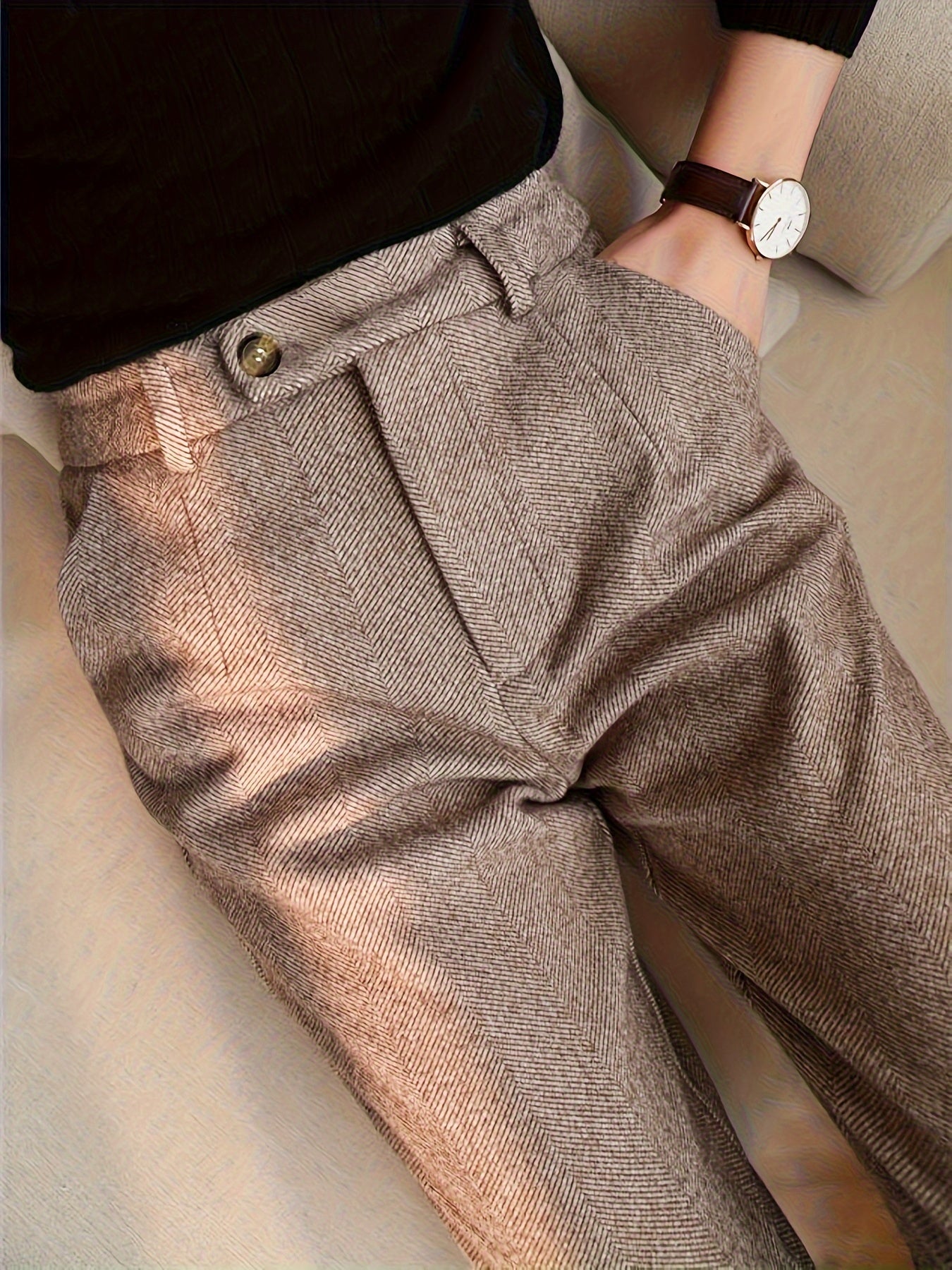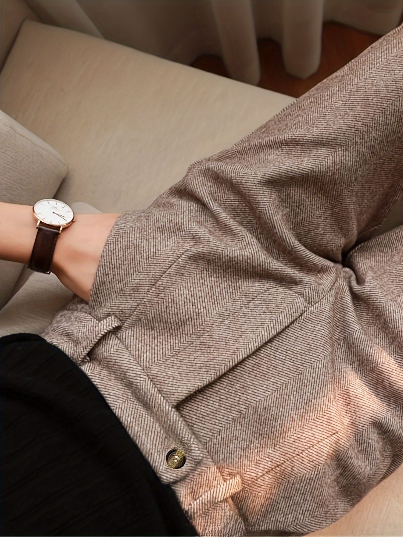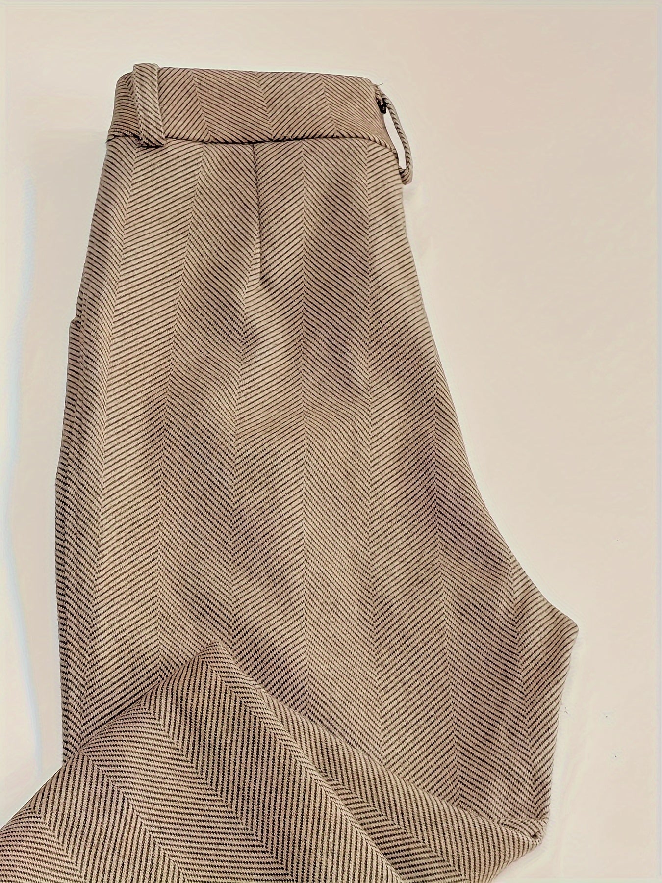 Calça reta espinha de peixe - cintura alta, botões frontais para trabalho e escritório