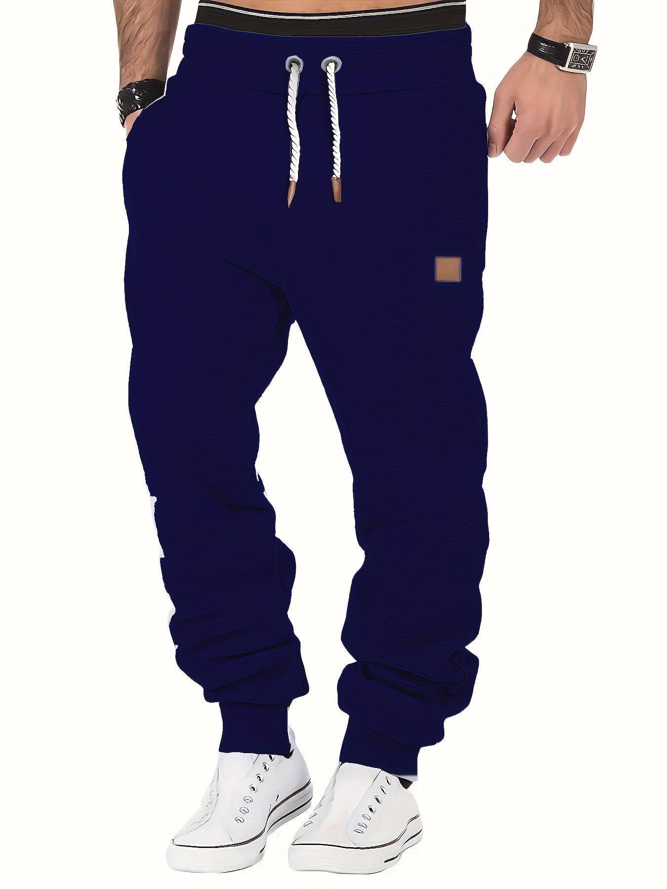 Calças de moletom masculinas com cordão, calças de moletom casuais com bolsos